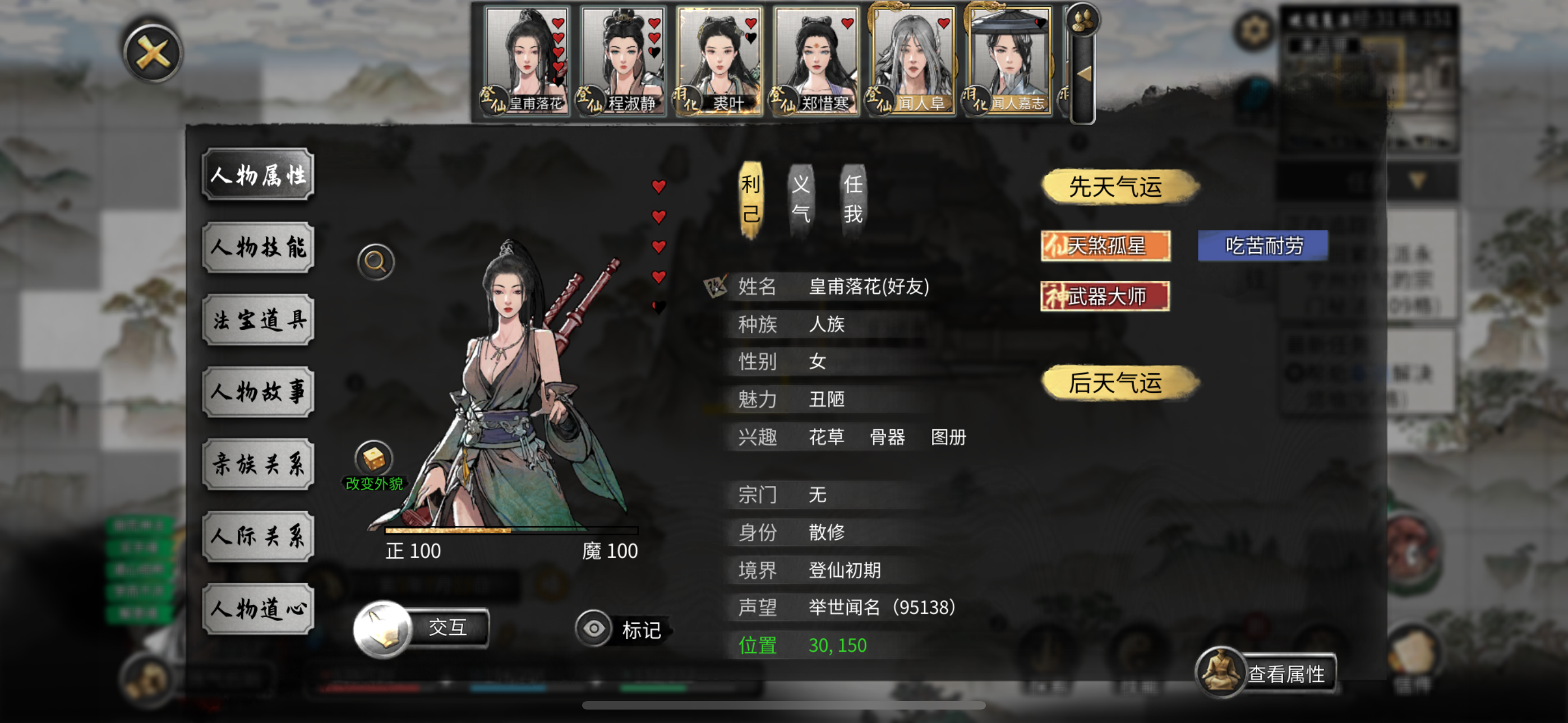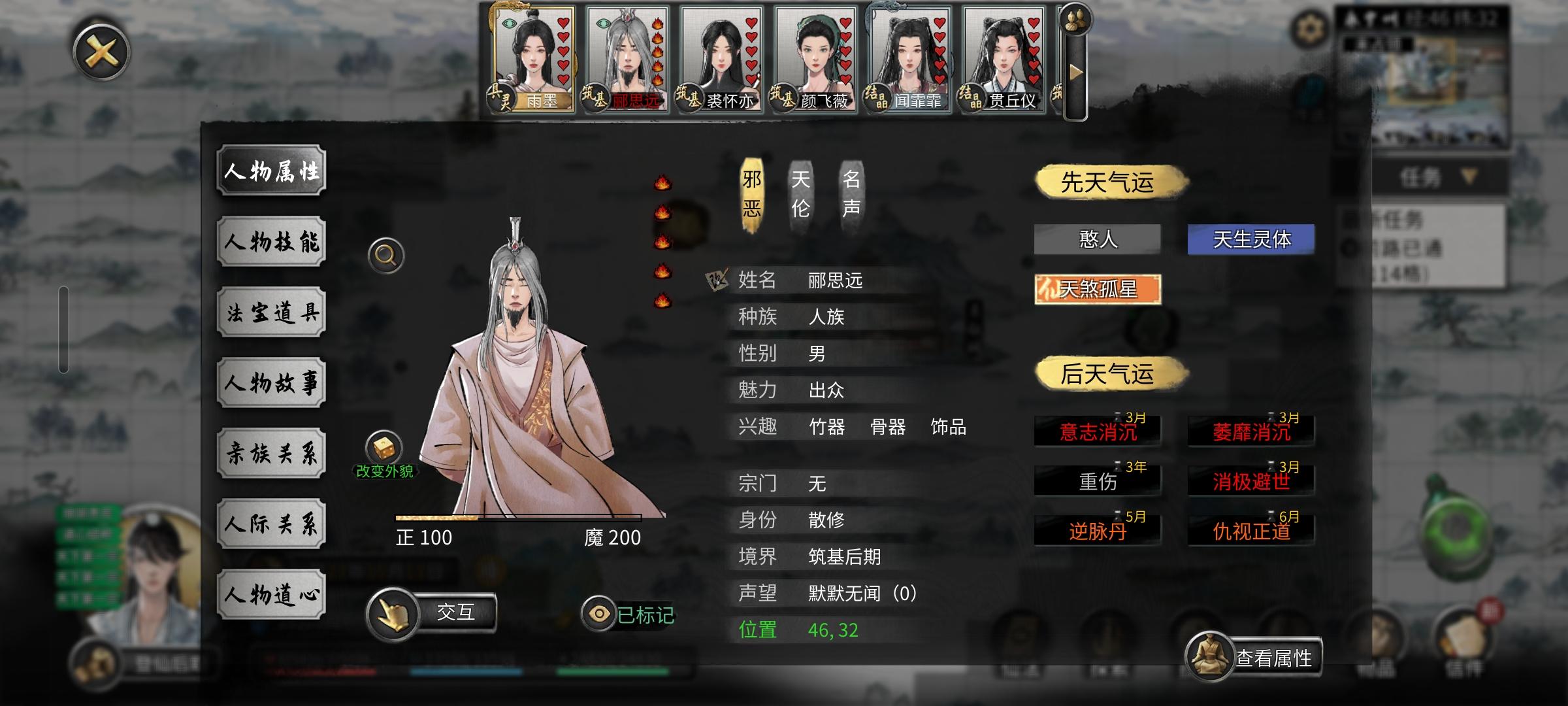 求助大佬们,练气偷渡到仙盟了,碰到好几个图中这样的,不管结缘,结义,拜师,都是提示不行。这是为什么呢? #鬼谷八荒