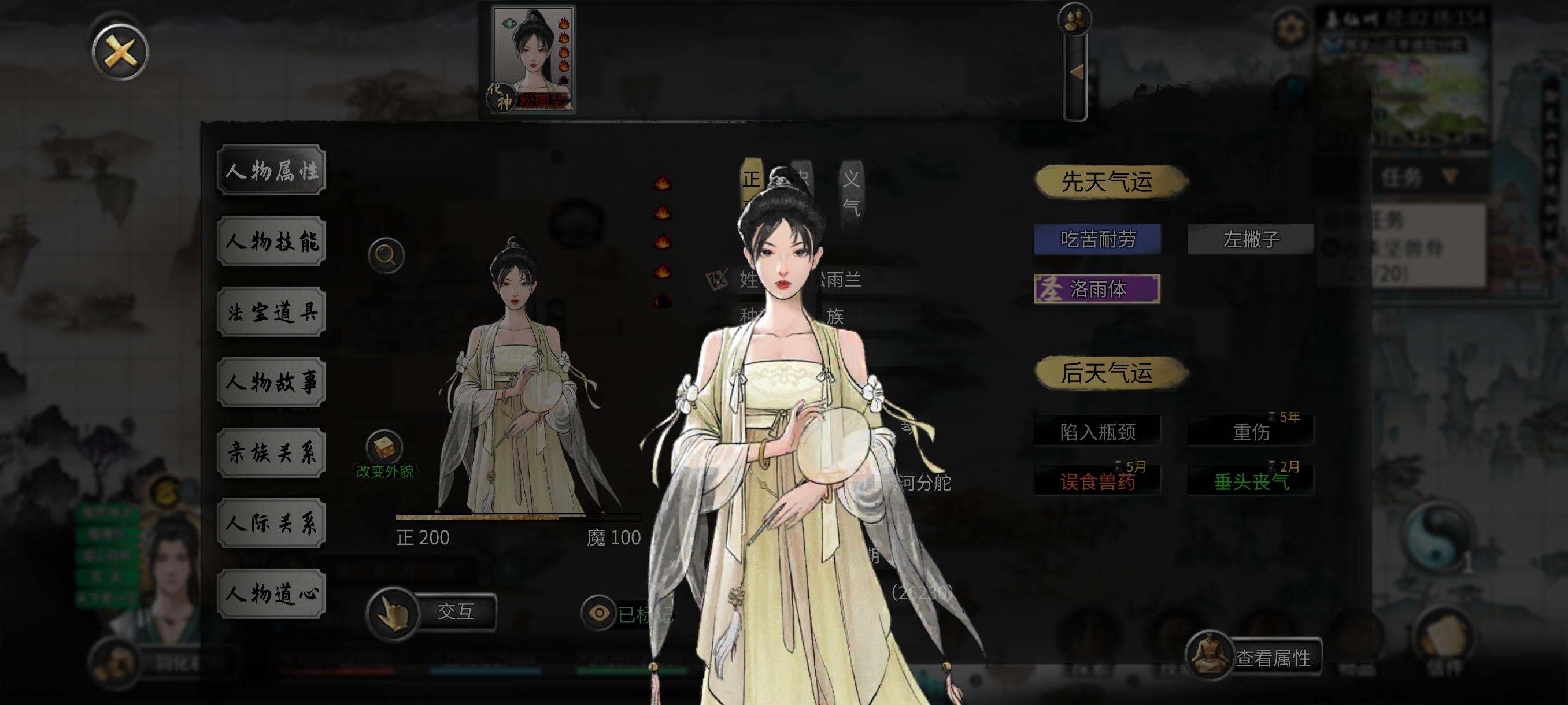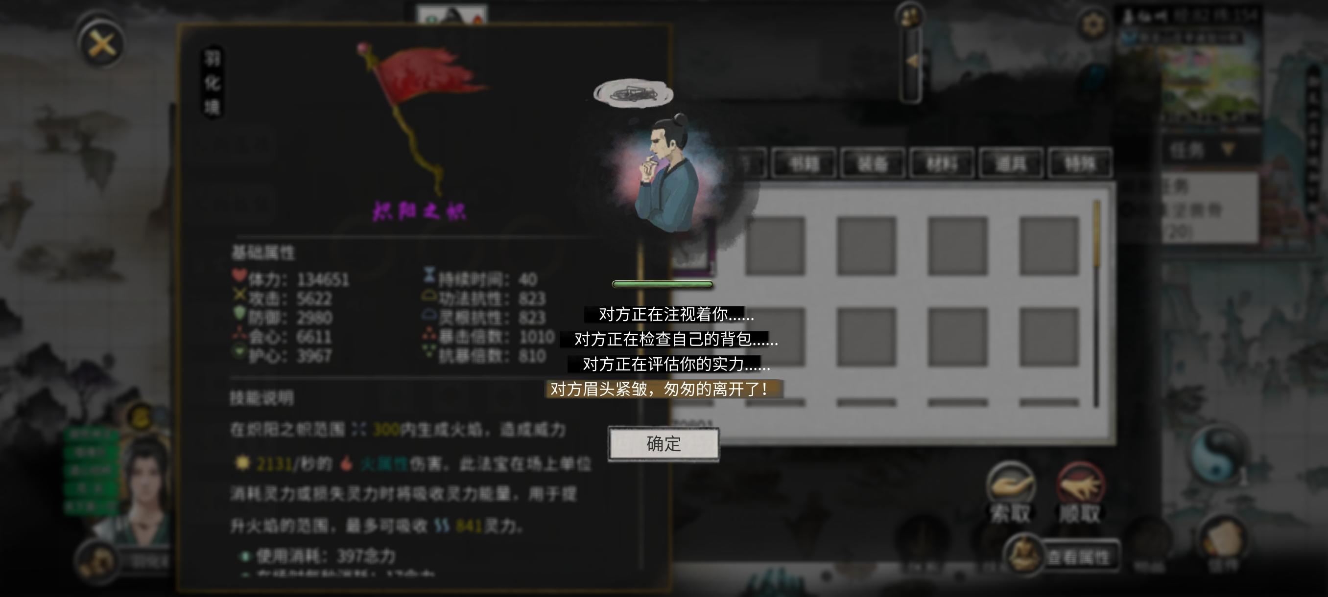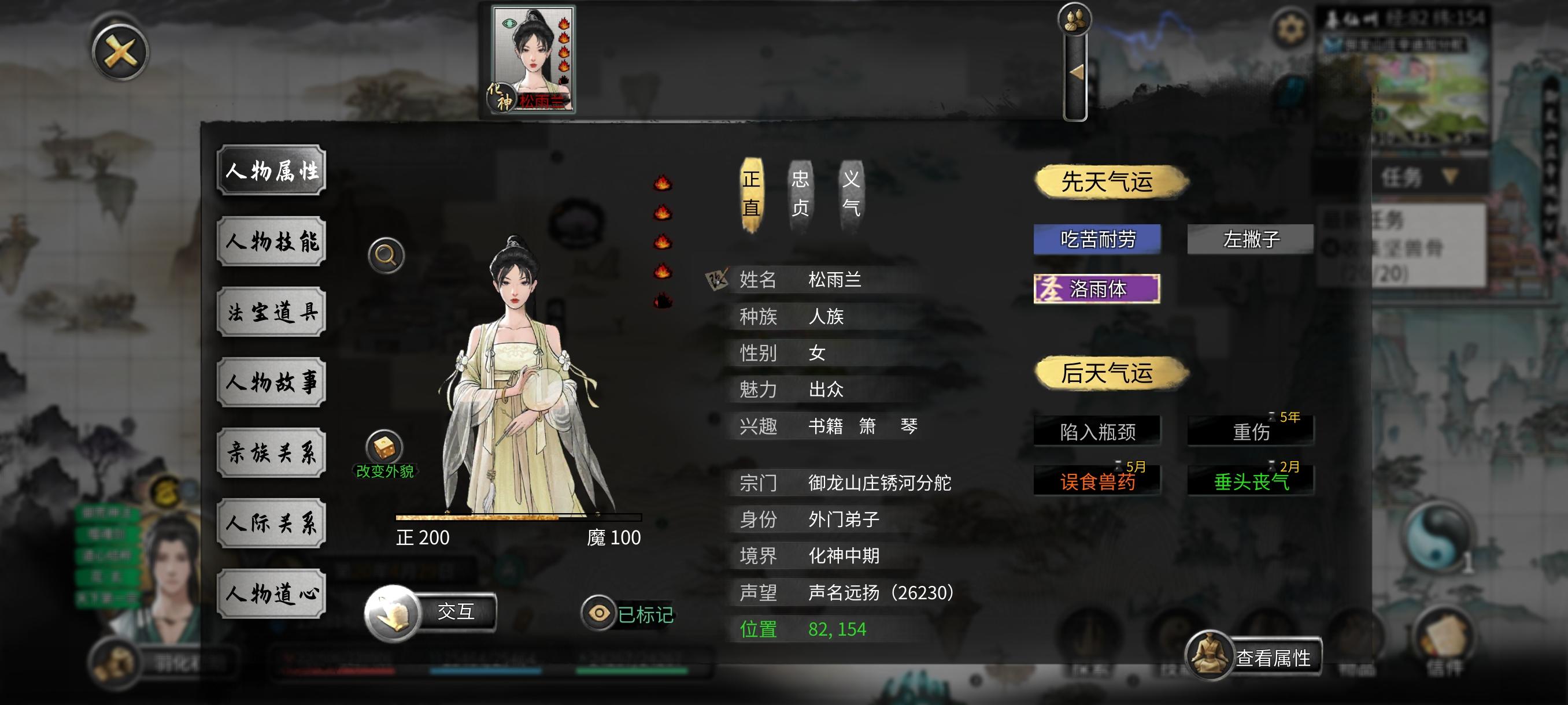 因为太TM无敌了,让我一个400+小时的资深玩家都感觉深深的无聊以前想玩哪个流派都是看着攻略先搞功法和词条啥的,插件更新后寻思试试吧,开局先连了一个金丹女,后边换了元婴天骄女,结晶后连了一个登仙天骄女,从此赤幽州前彻底无敌。战斗开始直接风身法角落里一站,然后就啥也不用管了