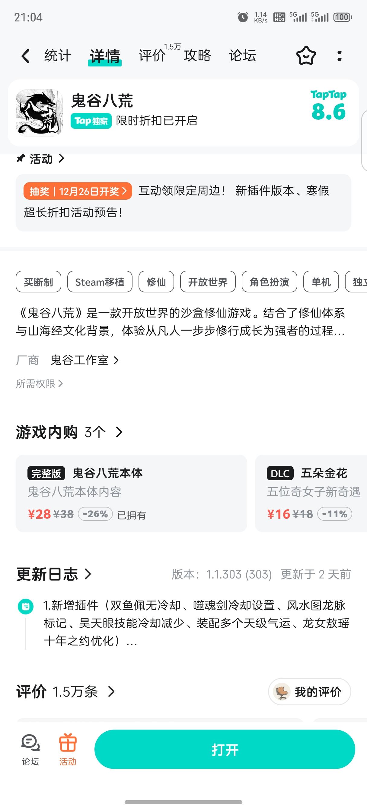 1.新增插件1)双鱼佩无冷却2)噬魂剑冷却设置3)风水图龙脉标记4)昊天眼技能冷却减少5)装配多个天级气运(可一次装配3个金色气运)6)龙女敖瑶十年之约优化2.优化插件(快速切磋论道插件优化,可选择跳过过程,并直接获得奖励)3.优化登录流程4.优化了某些情况下宗门大比的秘宝会被遮挡的显示问题5.修复了某些情况下城镇任务与宗门任务“击杀敌对修士”的目标会选中五朵金花的问题6.修