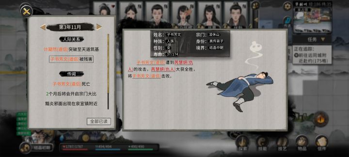 第一次玩这游戏在新手村就跟一个天骄结为道侣她一直送我突破材料和丹药之类的我一度怀疑这是真人在玩后面了解才知道除了我都是npc后面慢慢打怪升级我把自己都舍不得用的功法都给了她她境界几乎一致稳定比我高,就在我进阶元婴时血量不太好刚好仇人追上来了我的人皇剑又丢失了我有炼妖壶明明可以挡下她偏偏要来救我直接被敌人打得剩一缕神魂后面慢慢找丹药复活她 。后面多次替我挡下伤害