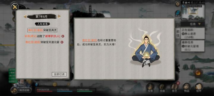 开始前准备,插件全开,选择洪荒模式,NPC数量较多(更好的刷到厉害的NPC) 先天气运必备:阴阳眼、大能转世 性格推荐:忠贞(好结道侣),传承(好拜师),中庸(对所有人都一样) 剑,风灵根资质尽量高(节省SL灵果时间) 神器选择:双鱼佩 1.进游戏先确认阴阳眼是否能正常触发(保证后续镇妖魂能正常触发,触发了其他的魂要回档,确保镇妖魂能稳定触发两次) 2.零步大法(走完零天的步数后保存,