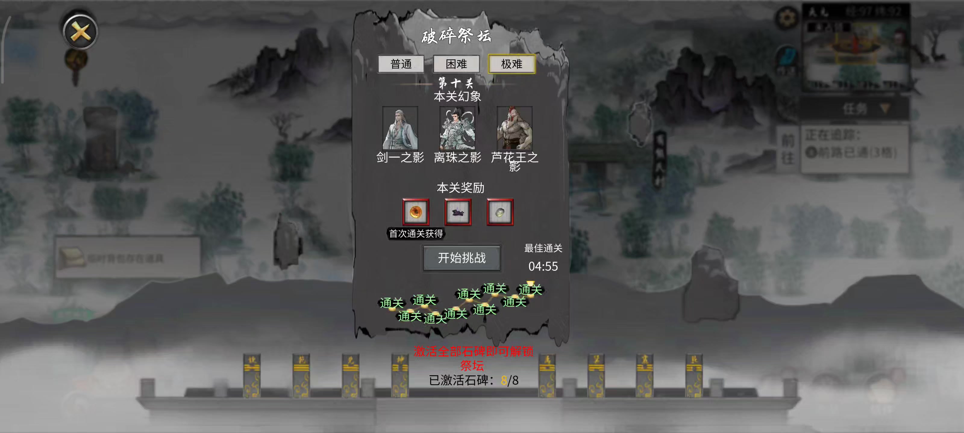 今天想来打打,以前八荒模式刷新的大妖兽都是比自己多一个境界的不好打,现在和自己境界相同了,没那么难打了