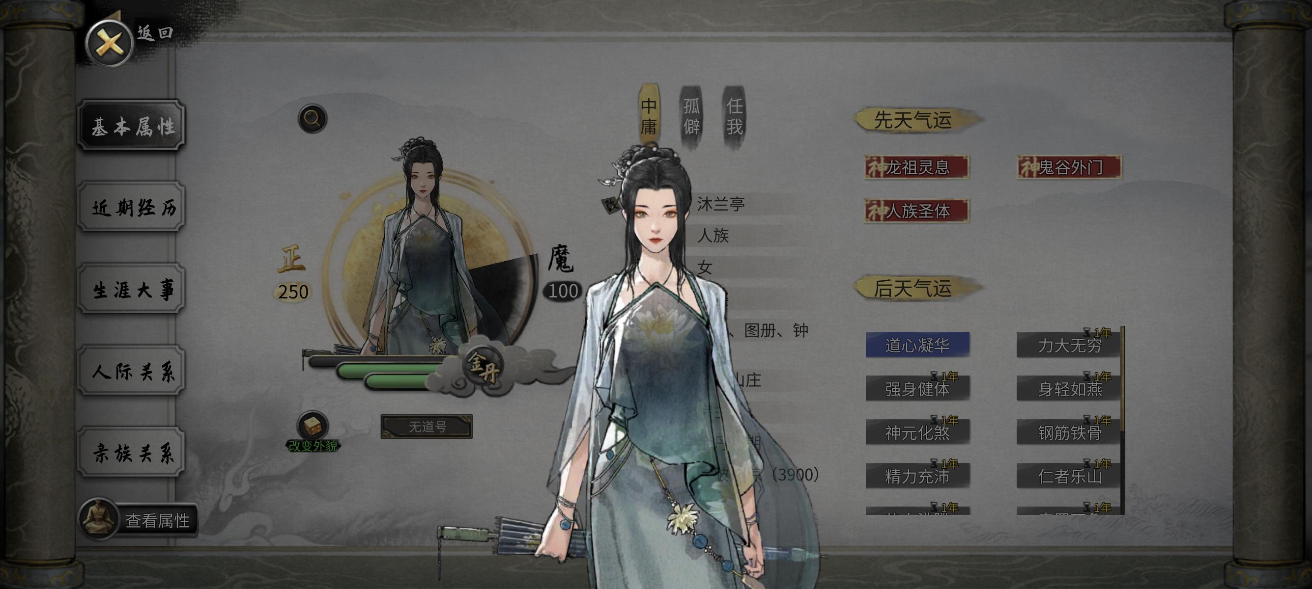 ★手游插件开满 (不开会很肝很肝)★洪荒开局(但是记得存档,死亡一次要回档,否则会被强行删档,只能重开。基本拿了噬魂剑,和天香的“帝花道君”游戏就变简单了。实在没信心可以选普通玩,其他难度不建议)★建议选最多NPC的选项 ,更多互动,也方便找Bug功法★天命气运介绍:★青莲剑仙:产生各种功能的莲子,强在资源获取,伴生技能需要配合剑系功法。主要是再也不缺复活药了,不需要为了亲友去学什么三生九