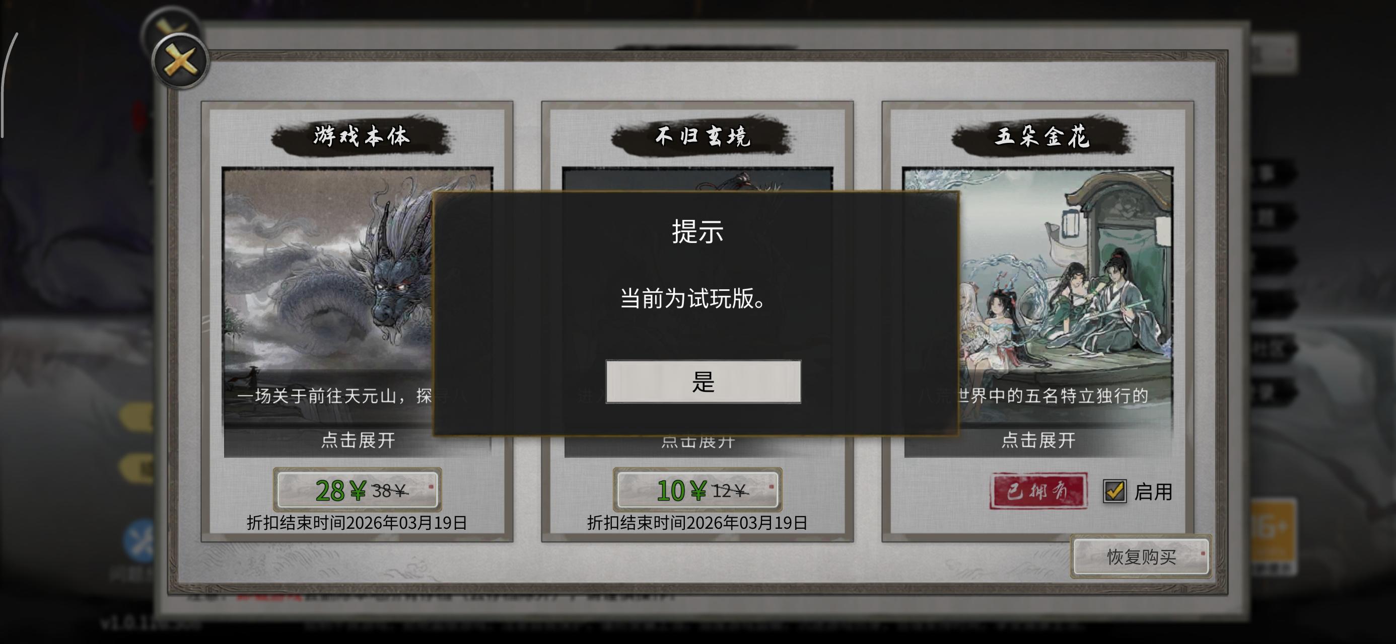 买的本体有一段时间了,玩了一段时间之后没玩了,最近更新一下想玩一下发现说我没买本体又要买,但是我一直用的就是这个taptap账号登录的呀,各位兄弟们有没有遇到这样的问题#游戏杂谈 #鬼谷八荒 #鬼谷八荒手 #鬼谷八荒手游