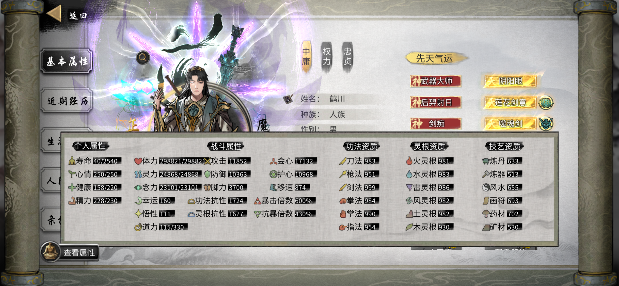 一.开局操作——————————1.进游戏主页面左下角插件管理,全部打勾。2.开局的先天气运可以选10个,不会操作的论坛搜索。天翎剑意一定要有,因为真的很爽。另外建议三个金色天赋全都选,噬魂剑也可后天抢npc3.神器随便选,对于角色强度影响微乎其微。会玩之后倒是可以去体验神器整活。这里进入游戏……二.发育思路 永宁洲——————————1.一定要做宗主为什么一定要做宗主呢?因为做了宗