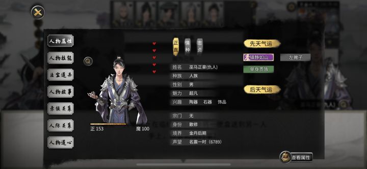 第二张图是我师傅的。我有两个徒弟,一男一女,是一对夫妻,男的是阴阳眼,我从金丹拉扯到登仙看着长大的,女的属于是一人得道鸡犬升天,看着男徒弟的面子也就收下当了徒弟。同时我有个师傅,我的火身法是金丹时期向她拜师学的,出于感谢我也给她拉到了登仙。再同时我还有个丈夫,是剧情那个三阴绝脉体,我第一次遇到,所以后面好了之后就和他结了夫妻。关系开始乱了,男徒弟进步神速,女徒弟化神的时候他元婴,现在女徒弟