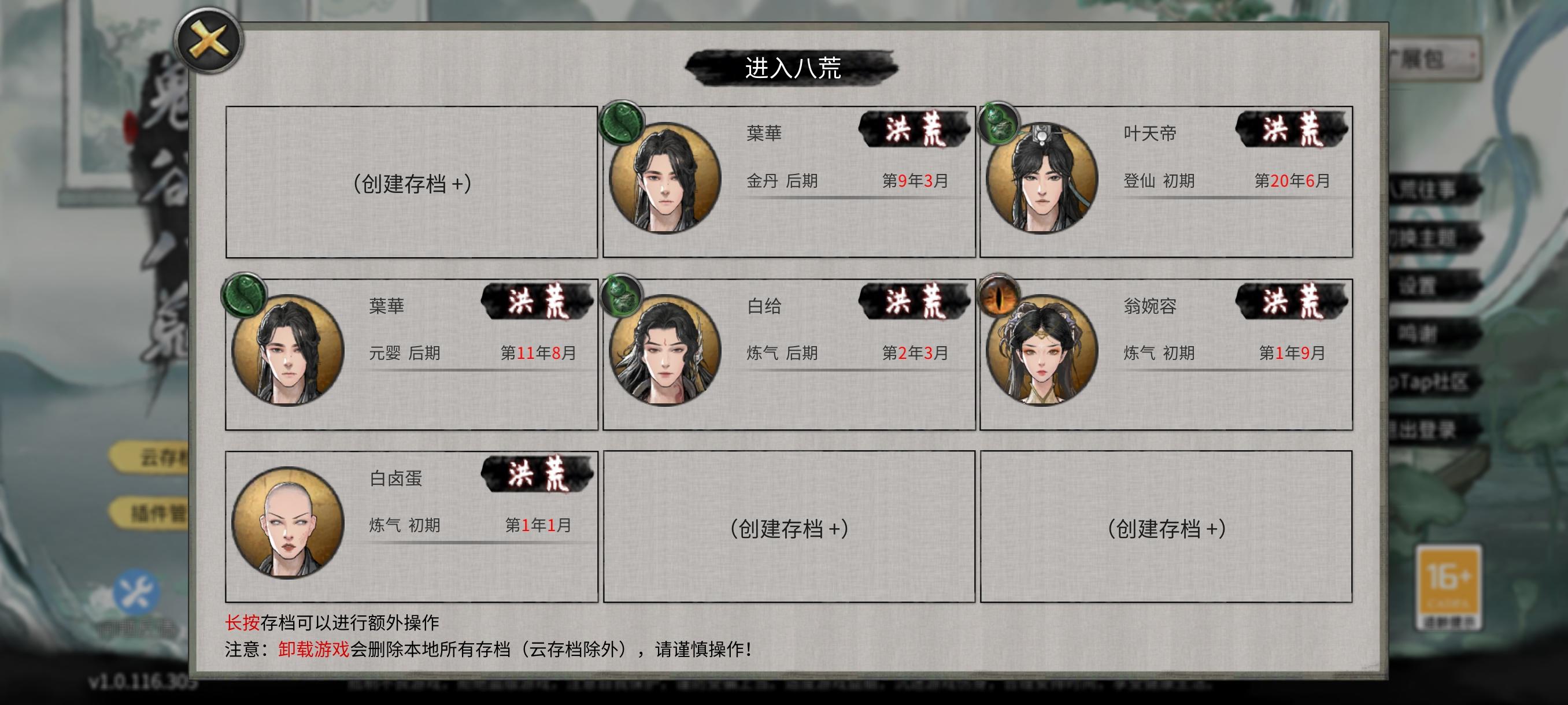 ★手游插件开满 (不开会很肝很肝)★洪荒开局(但是记得存档,死亡一次要回档,否则会被强行删档,只能重开。基本拿了噬魂剑,和天香的“帝花道君”游戏就变简单了。实在没信心可以选普通玩,其他难度不建议)★建议选最多NPC的选项 ,更多互动,也方便找Bug功法★天命气运介绍:★青莲剑仙:产生各种功能的莲子,强在资源获取,伴生技能需要配合剑系功法。主要是再也不缺复活药了,不需要为了亲友去学什么三生九