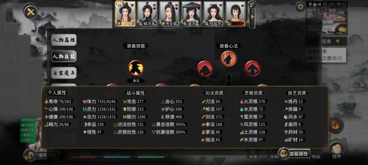 开始前准备,插件全开,选择洪荒模式,NPC数量较多(更好的刷到厉害的NPC) 先天气运必备:阴阳眼、大能转世 性格推荐:忠贞(好结道侣),传承(好拜师),中庸(对所有人都一样) 剑,风灵根资质尽量高(节省SL灵果时间) 神器选择:双鱼佩 1.进游戏先确认阴阳眼是否能正常触发(保证后续镇妖魂能正常触发,触发了其他的魂要回档,确保镇妖魂能稳定触发两次) 2.零步大法(走完零天的步数后保存,