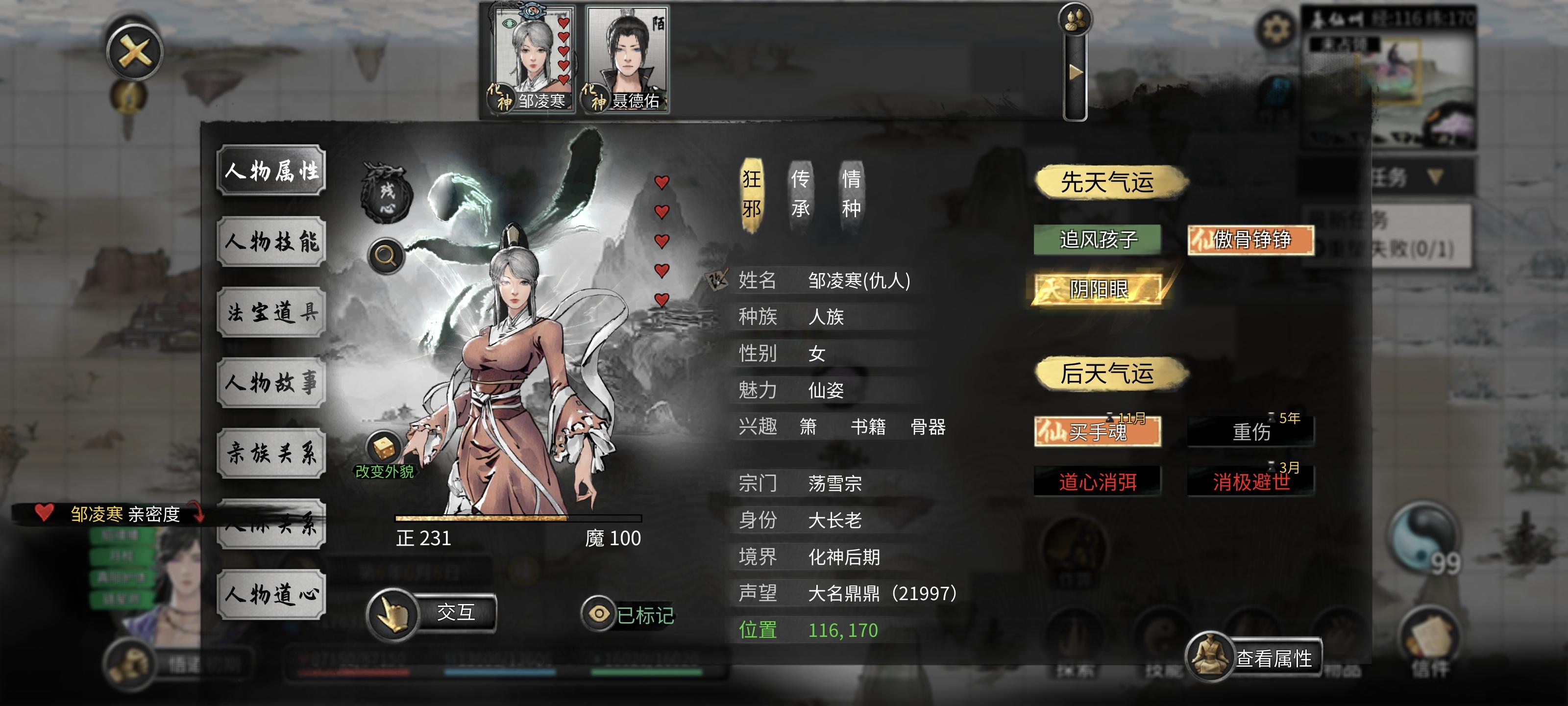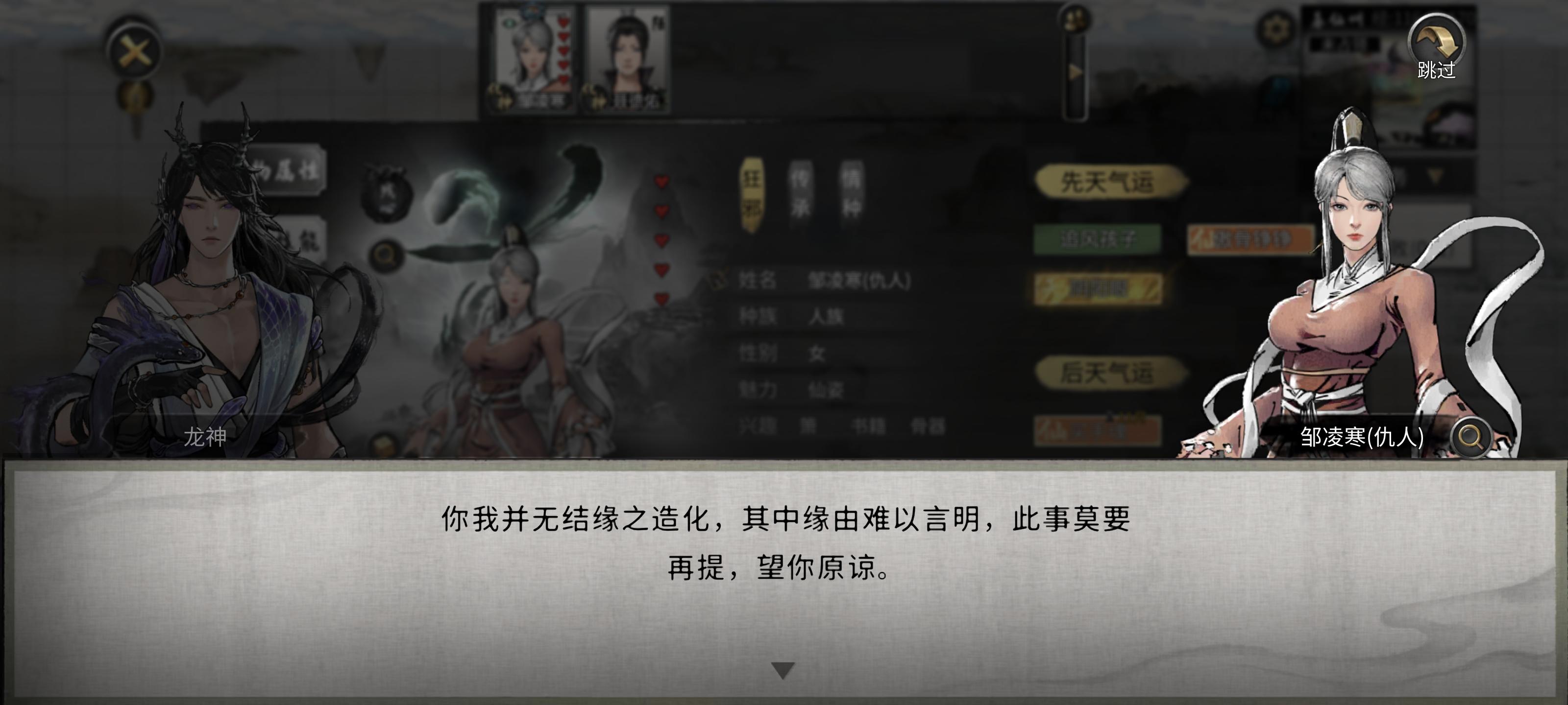 第1次玩鬼谷八荒的时候,选了一诺千金。想着一定要当纯爱人,还特地选了玉佩,送给道侣。结果一直到我登仙,她还在练气。每次被打死之后,她过来,我们两个一起死。每次看都被气笑。。更绝望的是,送她晋级材料她直接拿去卖了。。我还一直在思考,他是不是修炼速度太慢了,还把那个可以涨修为的丹药送给他,结果我在拍卖会上面看到了我送给他的所有晋级材料和修为丹。。。。把她望到给。第2个档玩的洪荒。筑基的时候送