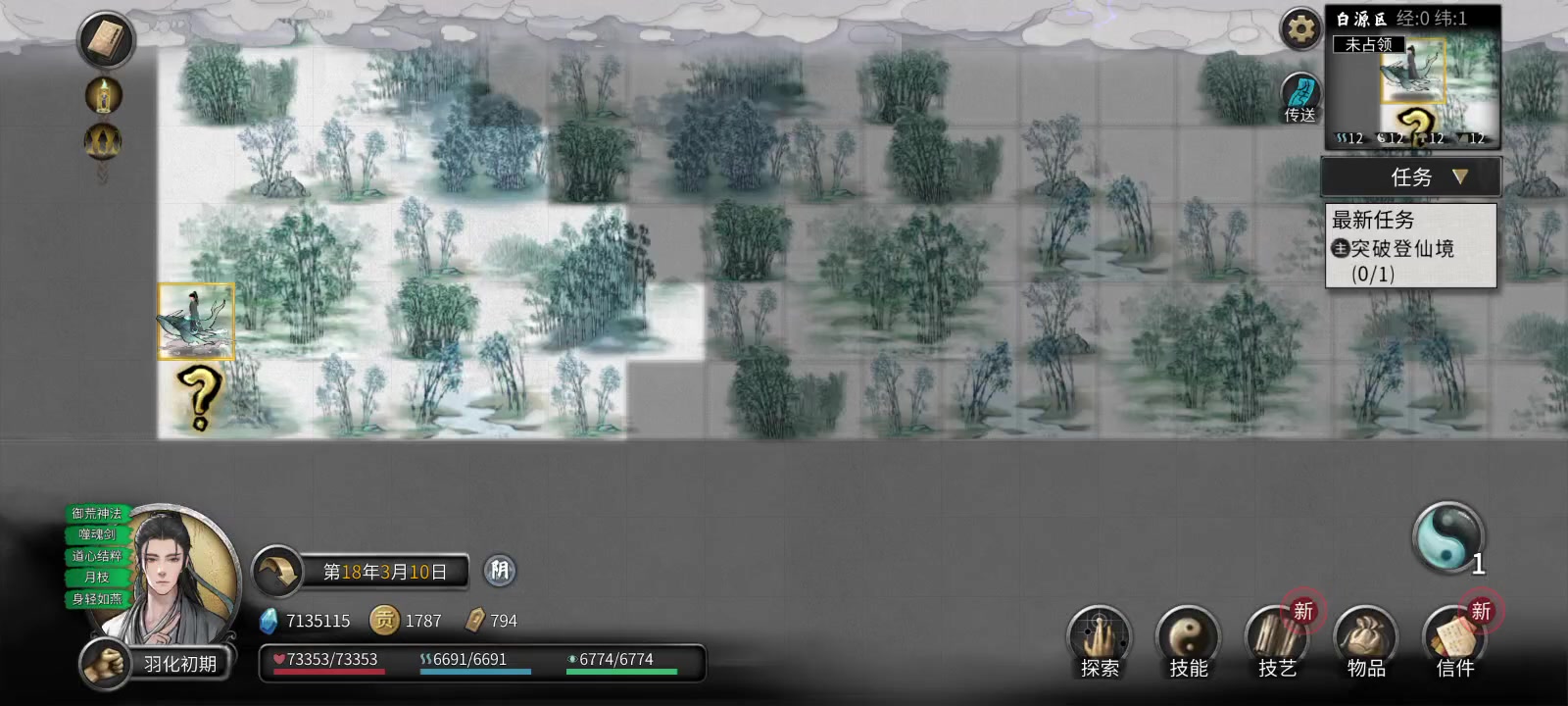 因为我有强迫症的原因,所以我在出生点突破的羽化,然后就出现了个问号,但是没有互动反馈