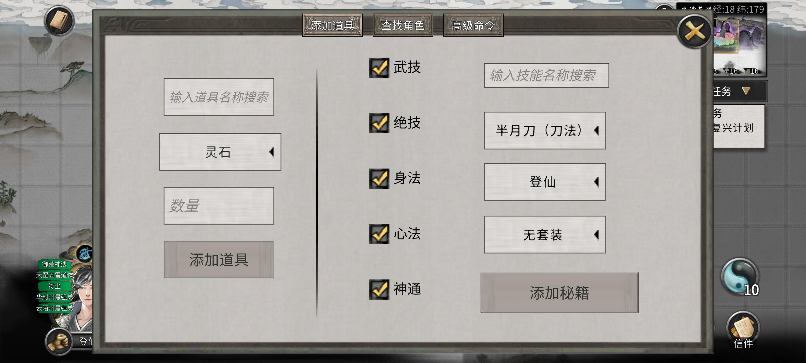 1.新增插件1)双鱼佩无冷却2)噬魂剑冷却设置3)风水图龙脉标记4)昊天眼技能冷却减少5)装配多个天级气运(可一次装配3个金色气运)6)龙女敖瑶十年之约优化2.优化插件(快速切磋论道插件优化,可选择跳过过程,并直接获得奖励)3.优化登录流程4.优化了某些情况下宗门大比的秘宝会被遮挡的显示问题5.修复了某些情况下城镇任务与宗门任务“击杀敌对修士”的目标会选中五朵金花的问题6.修