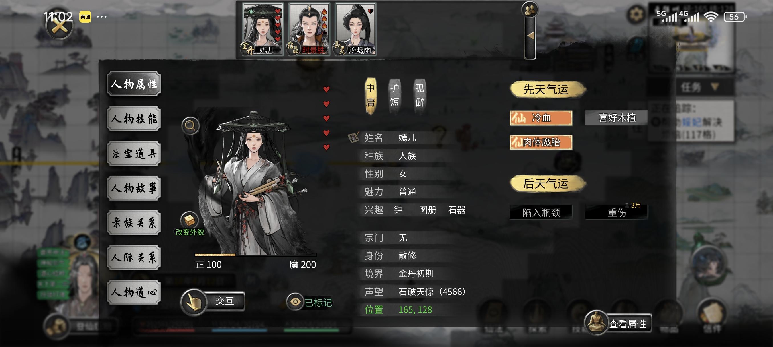 1、义气、正直性格的化形壶妖不参加宗门大比,其它3个中庸天伦忠贞的化形壶妖也不参加。2、玩家搬迁到赤幽州的宗门天生矮其他宗门一截,人数格子少了几十个。 其他在暮仙州有分舵的宗门,它的格子是有一大堆格子的,没有分舵的是10个真传、5个内门、5个外门的。如图1为宗门示意图,暮仙州开局就只有4个宗门我也不知道什么回事。图2为苍雪殿(赤幽州总部)人数格子部分图,它有10个真传位,70个内门位,50