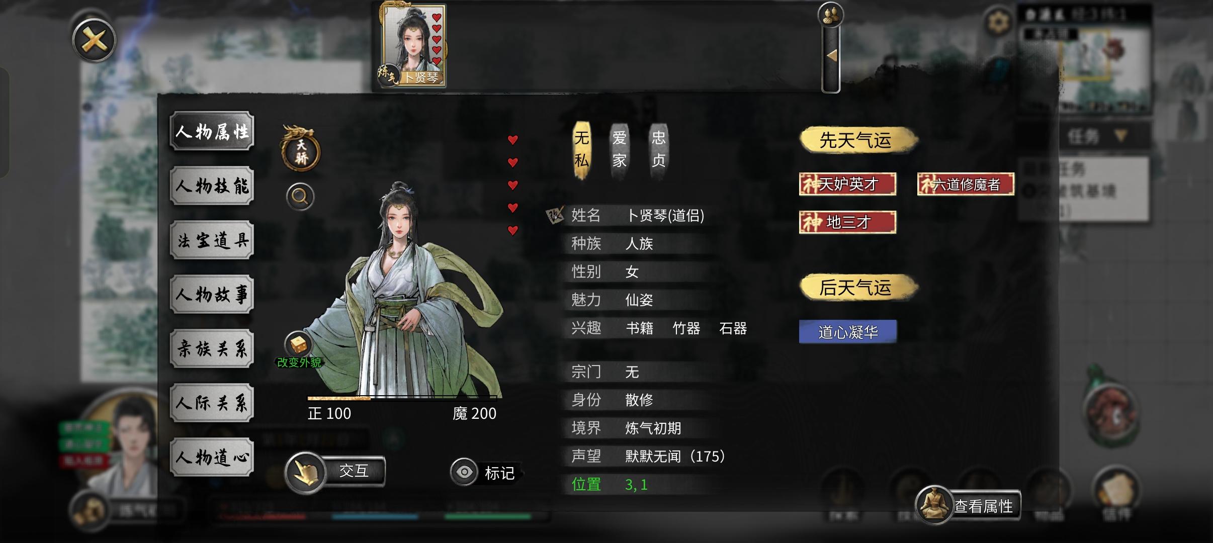 第1次玩鬼谷八荒的时候,选了一诺千金。想着一定要当纯爱人,还特地选了玉佩,送给道侣。结果一直到我登仙,她还在练气。每次被打死之后,她过来,我们两个一起死。每次看都被气笑。。更绝望的是,送她晋级材料她直接拿去卖了。。我还一直在思考,他是不是修炼速度太慢了,还把那个可以涨修为的丹药送给他,结果我在拍卖会上面看到了我送给他的所有晋级材料和修为丹。。。。把她望到给。第2个档玩的洪荒。筑基的时候送
