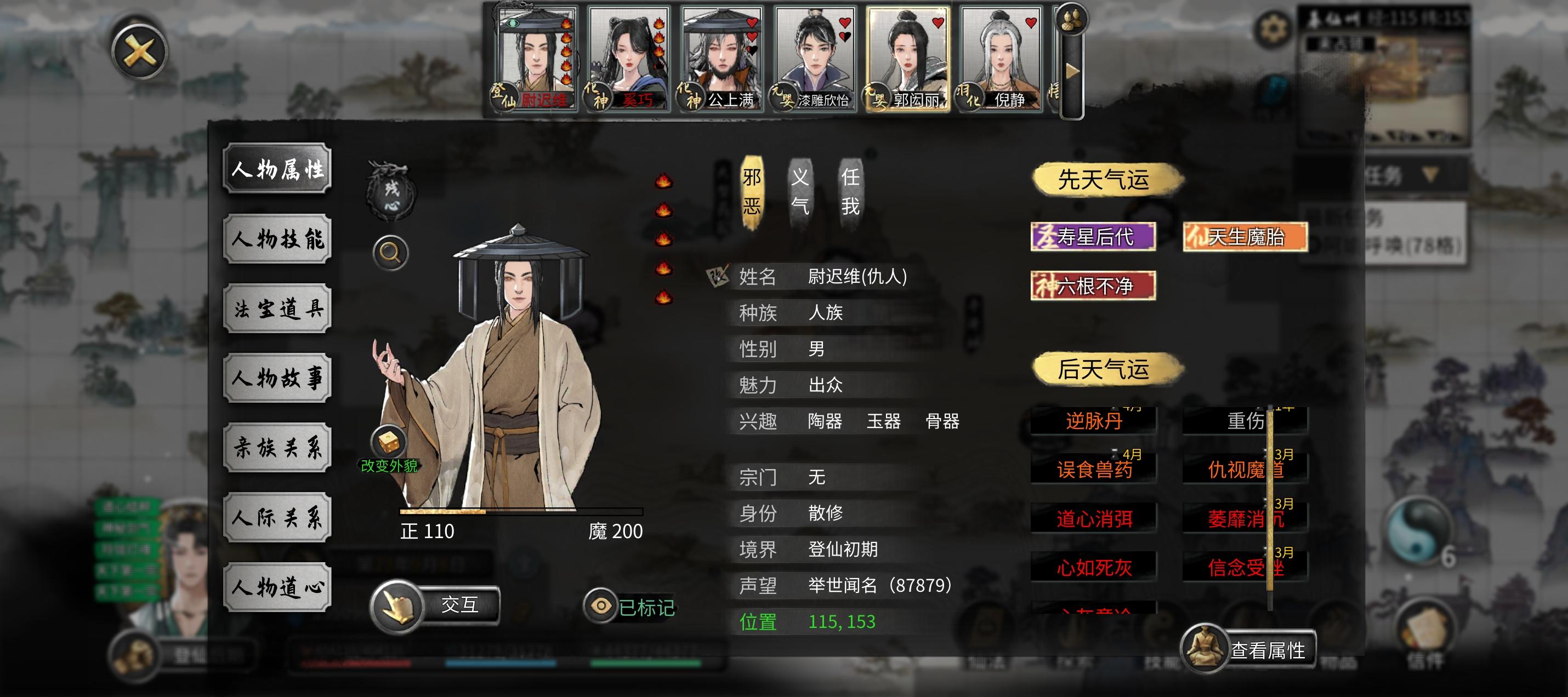 游戏已买入一年,走图频繁弹窗跳月,筑基期还没有突破 字太小了 不像网游一样点击自动跟随然后今天入宗门买一品丹因念力不足300(本身209)无法使用,刚买的时候因到处找到处跑 磨人心态,一年后回归因念力提升 不知道在哪里 系统也没有提升如何提升念力。总之不玩了