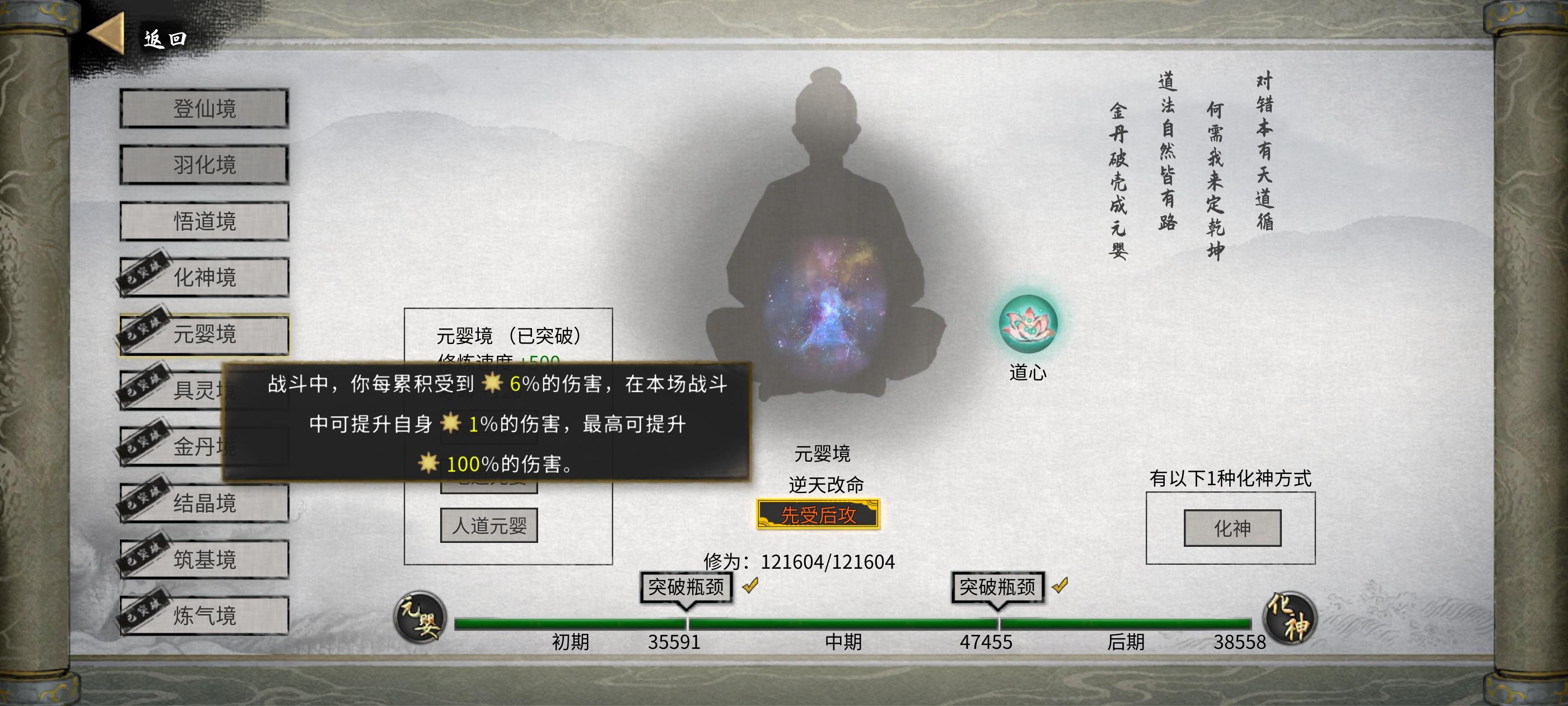 第一把玩普通模式试试水,找了不少攻略看,决定去玩火剑。拜的宗门只有剑,就只能去城市买绿色火身法。神通攻略说不重要也就没带。武学是月影碎星(绝影刷半天都是紫的,实在太坐牢了,就换了个红的碎星),逆天跟攻略说的sl刷了血灵和血魔,结果如同鸡肋根本用不上。筑基后期过月时莫名其妙被一个结晶后期的疯女人杀了,一复活就猛刷材料等结晶中期把她给杀了。结果结晶后期又莫名其妙来了个金丹后期打我,还把我功法抢了。过