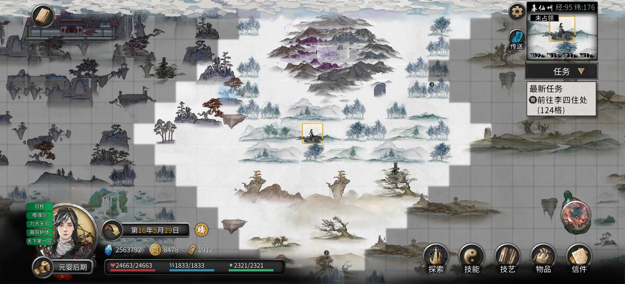 第一把玩普通模式试试水,找了不少攻略看,决定去玩火剑。拜的宗门只有剑,就只能去城市买绿色火身法。神通攻略说不重要也就没带。武学是月影碎星(绝影刷半天都是紫的,实在太坐牢了,就换了个红的碎星),逆天跟攻略说的sl刷了血灵和血魔,结果如同鸡肋根本用不上。筑基后期过月时莫名其妙被一个结晶后期的疯女人杀了,一复活就猛刷材料等结晶中期把她给杀了。结果结晶后期又莫名其妙来了个金丹后期打我,还把我功法抢了。过