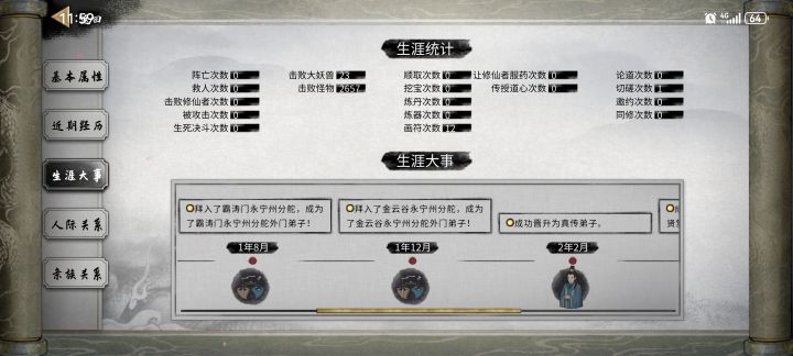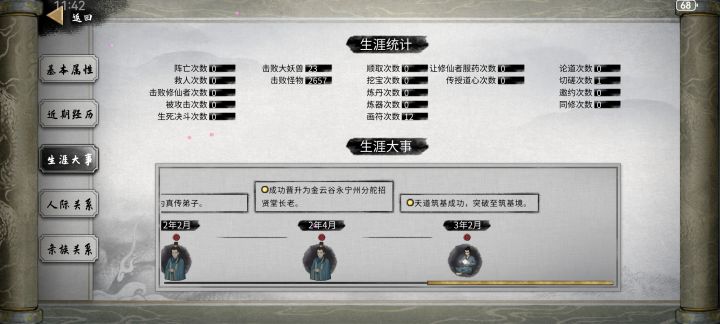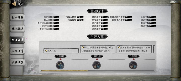 开始前准备,插件全开,选择洪荒模式,NPC数量较多(更好的刷到厉害的NPC) 先天气运必备:阴阳眼、大能转世 性格推荐:忠贞(好结道侣),传承(好拜师),中庸(对所有人都一样) 剑,风灵根资质尽量高(节省SL灵果时间) 神器选择:双鱼佩 1.进游戏先确认阴阳眼是否能正常触发(保证后续镇妖魂能正常触发,触发了其他的魂要回档,确保镇妖魂能稳定触发两次) 2.零步大法(走完零天的步数后保存,