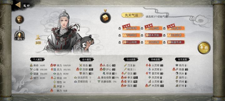 新挡洪荒走起,土修召唤流,开局天赋9个都是是防御属性,叠到了50防御力,只叠主属性,其他资质什么在游戏里面随便补。