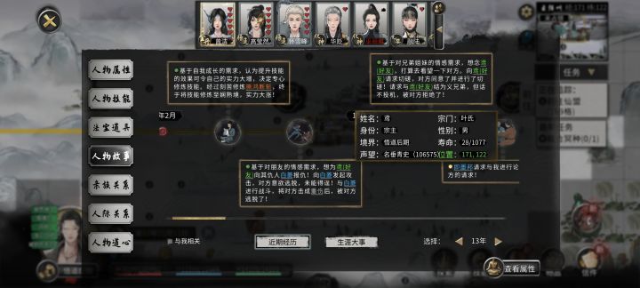 化形就放生了,随便选了性格,忽然发现这哥们是真能处啊(虽然我拒绝成为义兄弟),我的仇人时刻处于重伤状态,更是有个天骄仇人被打到道心不稳