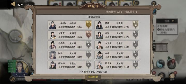 打那个兽潮的时候我感觉土修,洪荒难度然后羽化的时候,都没配什么好的刑法包括好的功法这些随便打,就是技能和神通这些都装了,我记得我土修好像第二次打的时候好像也是羽化还是第一次他就是1万4,然后券修好像才六千多,当时好卡,为什么能打伤害这么高呢主要我感觉还是那个青鸟很强,加上洪荒难度加强了傀儡,虽然打Boss是真垃圾,但是打这个兽潮还是蛮好的然后我上了鸡哥,青鸟就是召唤物越多伤害越高(我不知道有没有上