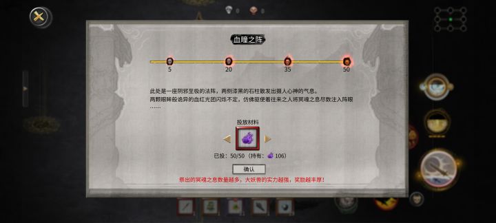 建议新增奇遇噬魂剑主追杀,在玩家进入华封州选择生成噬魂剑npc后,当在噬魂剑npc附近过月且无其他npc在附近时会被噬魂剑攻击。如果被击败,无论在何难度,都无法复活直接删档。使用隐息符可减少概率,以及噬魂剑增加吞噬残魂选项(增加修为)。