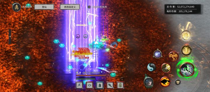 之前心法词条没有完美血量70w时候秒伤5亿,现在80w血量加上完美心法2.2w会心,1.9w攻击力和800暴击倍率,木桩已经扛不住了,测不出来伤害了,裸拳伤害近两亿,八荒中已经没有人能扛住着一拳了