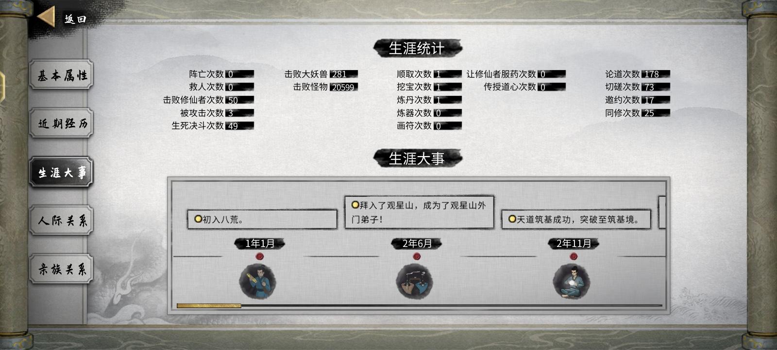游戏已买入一年,走图频繁弹窗跳月,筑基期还没有突破 字太小了 不像网游一样点击自动跟随然后今天入宗门买一品丹因念力不足300(本身209)无法使用,刚买的时候因到处找到处跑 磨人心态,一年后回归因念力提升 不知道在哪里 系统也没有提升如何提升念力。总之不玩了