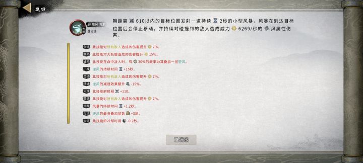 之前听说纯风很刮痧,所以尝试了一下洪荒纯风,实际上纯风输出其实还可以,并没有想象中的刮,下水道衡天战斗时长1分钟左右,按几下就完了。这套主要是依靠旋风触发天瞳来搞事情。先天气运为噬魂剑,鬼谷外门,三清道童,神器炼妖壶(三清后期其实也没必要,但是先天悟性需要刷个好点的配个攻击更香)。武技选择逆风是绝技没有引爆,密卷逆风增伤,所以逆风更直接绝技选择掠风术是因为掠风术会变成金花兰幽的绝技,兰幽DLC