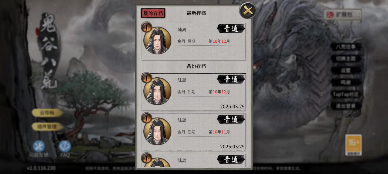 在半夜两点钟,我刚把天元山旁边的残碑全部挑战完,本来想去仙盟买点心法,结果一点开传送啥也没有,感觉很不妙,点击保存游戏,最终出现了一直保存的现状 。我真的不想再打一遍,怎么办,怎么办,怎么办?官方会看到吗?我刷抖音干别的都可以就是保存不了。