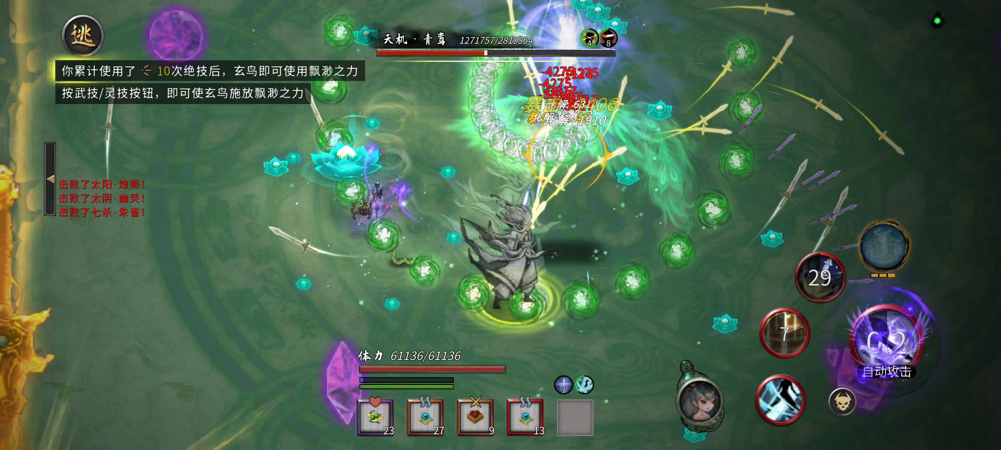 众所周知,有持续时间的身法在持续时间内cd是不走的。 但御龙山庄有龙灵啊!需要龙灵的减cd,搭配风身法,如视频所见完全可以无缝。我这是莲花龙祖开局,纯剑过渡到悟道后期,因为生存能力不够把身法换成风,意外发现可以无缝风身法了,只要有血灵血魔增添续航那已经可以解放大脑了,哪里亮了点哪里。[表情_斜眼笑] 玩纯枪过渡就其他不变,身法换风身法也是一样的效果。 这么整也不用阴阳鱼开局帮助过渡了,正常炼妖壶开