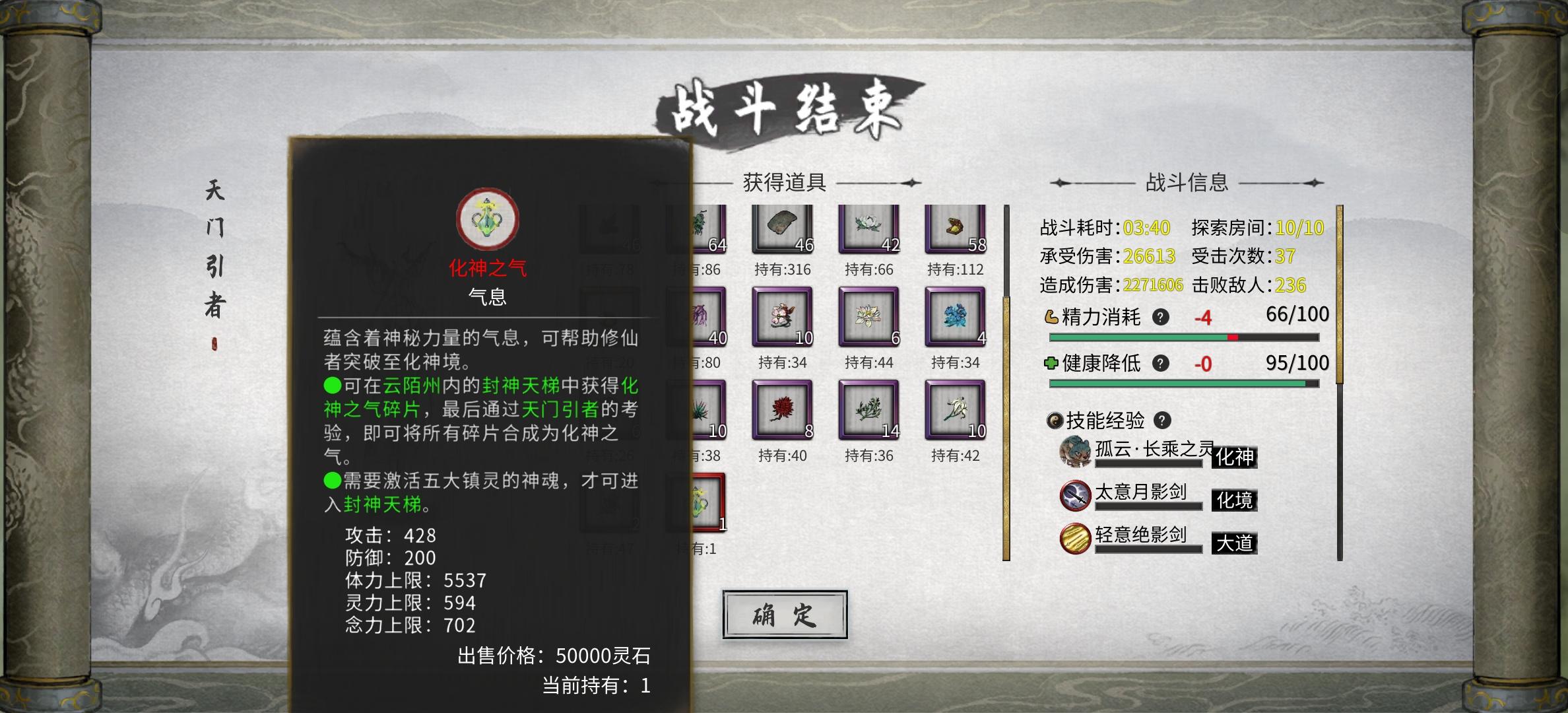 刷了2小时,终于有一个400以上攻击力的了#鬼谷八荒