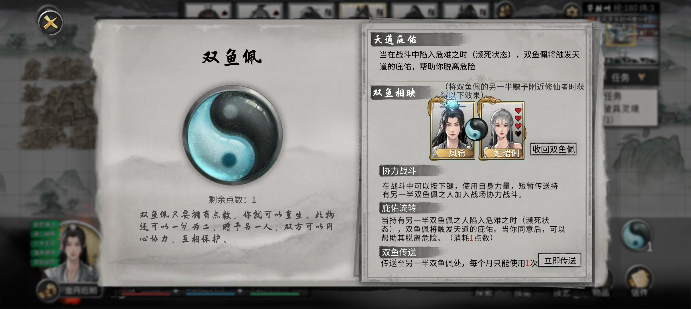 第1次玩鬼谷八荒的时候,选了一诺千金。想着一定要当纯爱人,还特地选了玉佩,送给道侣。结果一直到我登仙,她还在练气。每次被打死之后,她过来,我们两个一起死。每次看都被气笑。。更绝望的是,送她晋级材料她直接拿去卖了。。我还一直在思考,他是不是修炼速度太慢了,还把那个可以涨修为的丹药送给他,结果我在拍卖会上面看到了我送给他的所有晋级材料和修为丹。。。。把她望到给。第2个档玩的洪荒。筑基的时候送