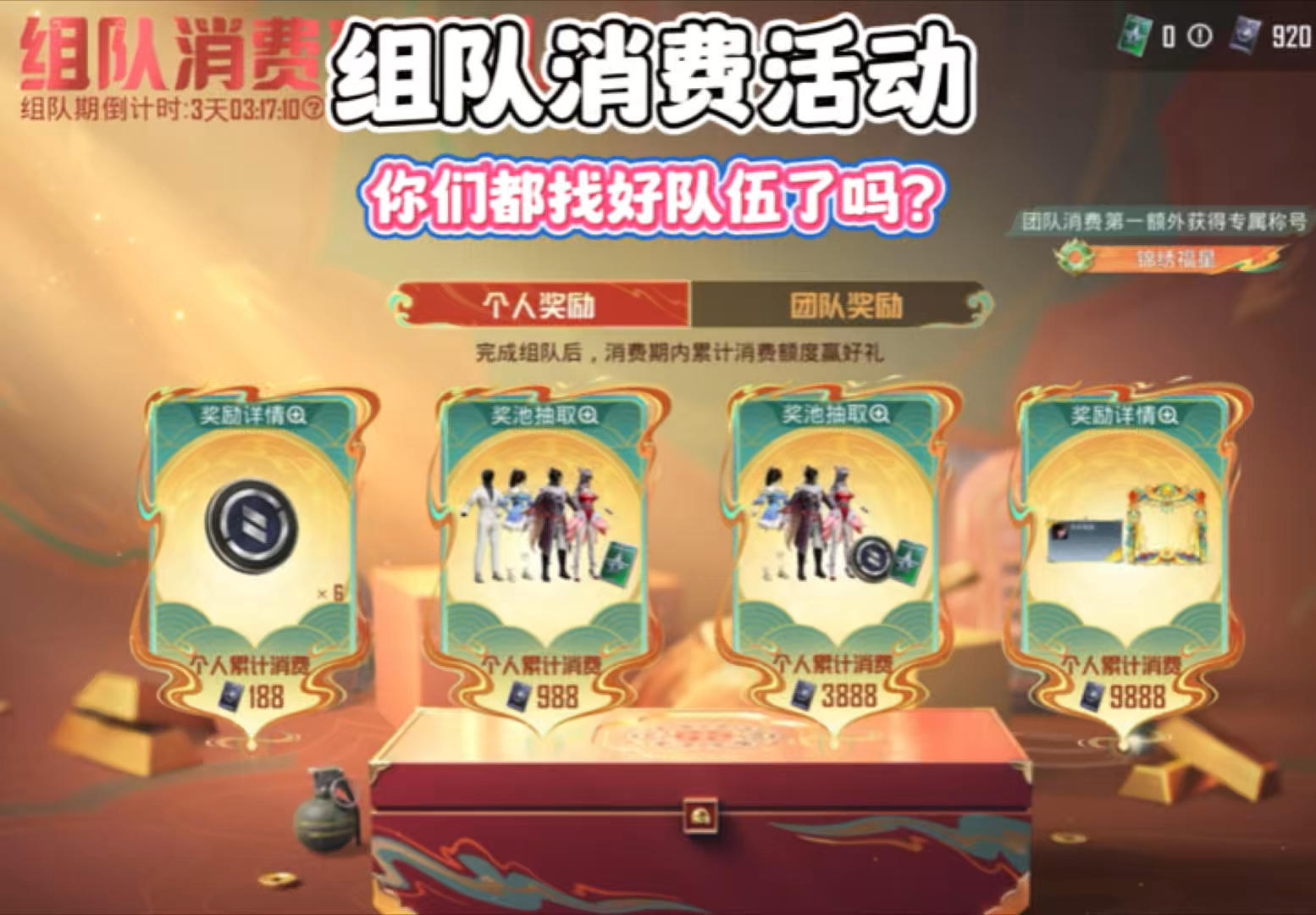 和平组队消费活动 你们都找好队伍了吗?
