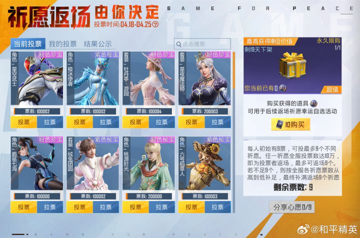 《和平精英》祈愿投票返场限时开启 心动打榜+欧气代抽重磅来袭