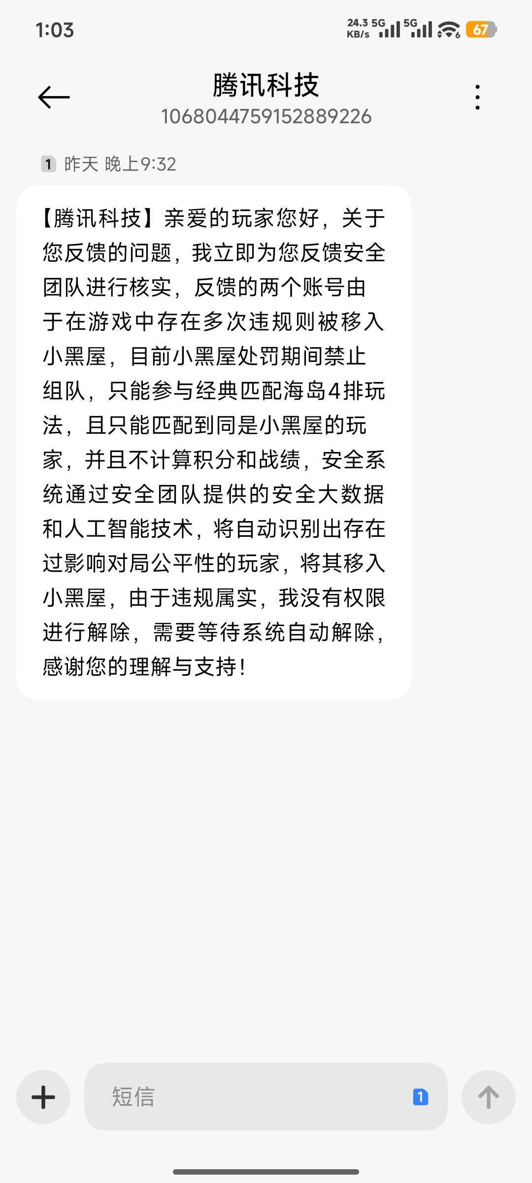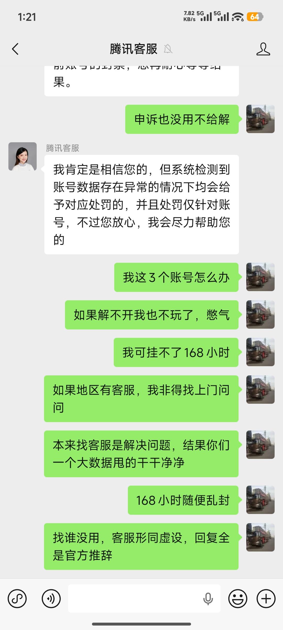 服了和平精英在线客服!态度贼客气,办事贼没用!真的要被和平精英气炸了!谁懂啊,连续封号就算了,申诉通道根本就是个摆设,纯纯恶心人!我这已经是第三个账号封得我莫名其妙,客服就只会说 “大数据监测异常”。行,我信了邪,花一天时间重做系统,硬盘都格了,所有软件全卸载,就留了个系统和游戏。结果呢?新账号刚打两局,直接给我封 168 小时 —— 整整 7 天!