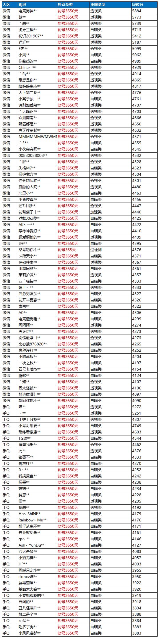 在新一轮比赛开始前,8倍镜在这里向大家专项公布巅峰赛打击成果,即上一轮巅峰赛中作弊玩家的处罚名单。借此机会,8倍镜再次强调:巅峰赛开启了《和平精英》史上最严安全检测和处罚机制,请各位特种兵遵守游戏规则,公平竞技。