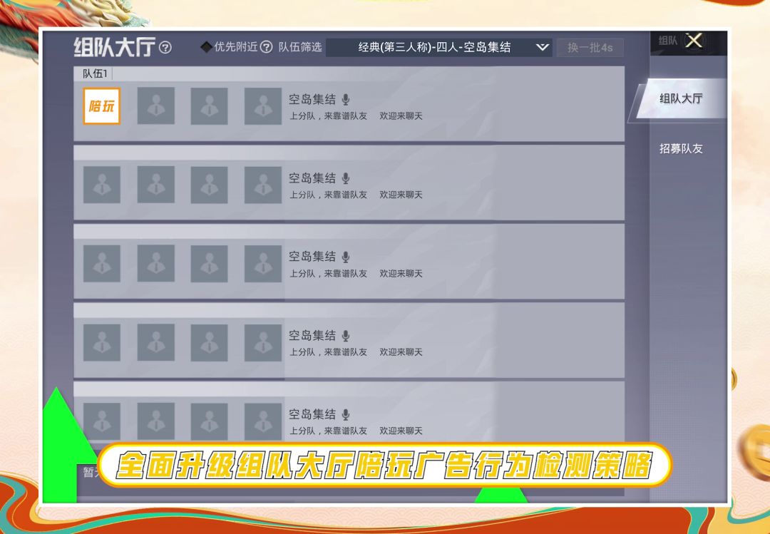 为了给特种兵营造良好的游戏风气,我们将持续加强治理组队大厅,