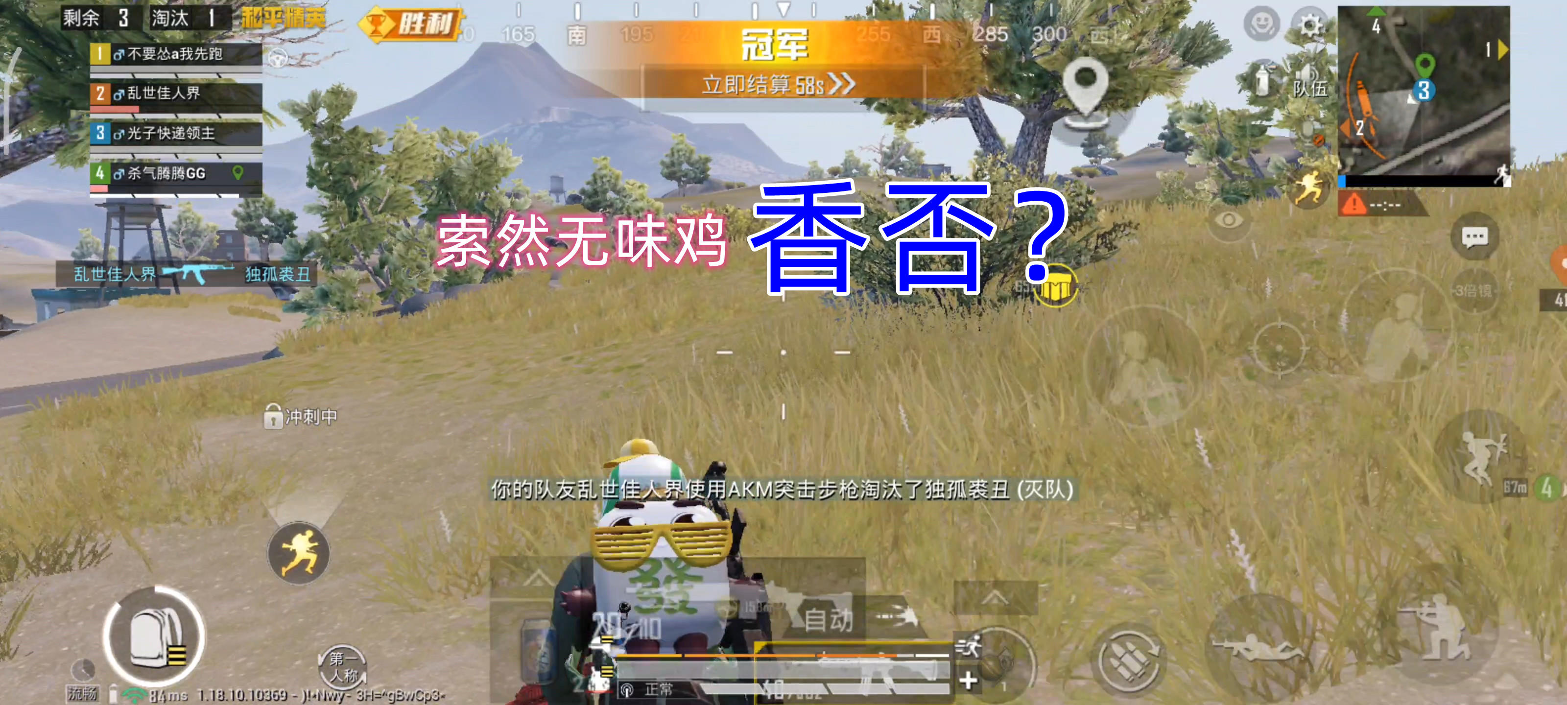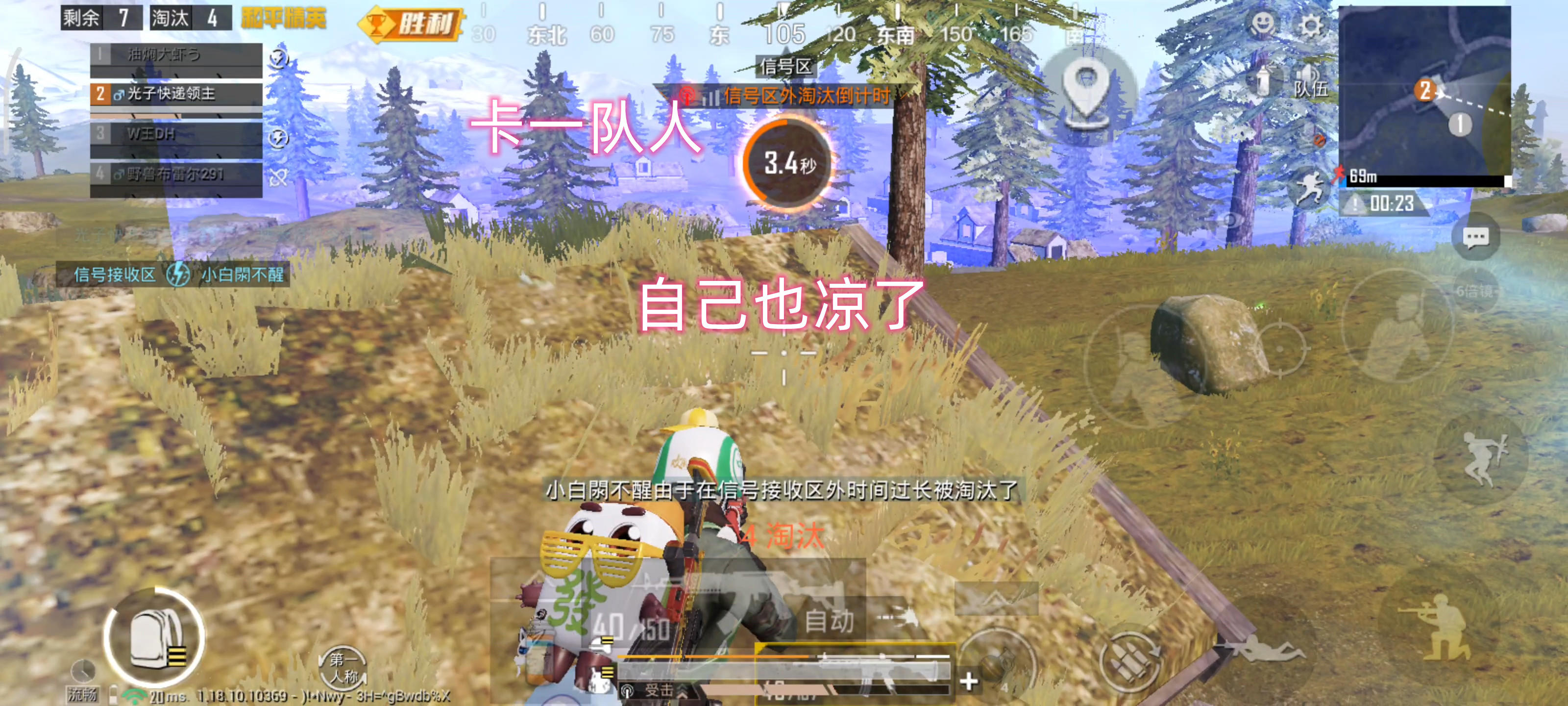 单人四排,打倒三个的时候,我以为稳了,结果大意失荆州