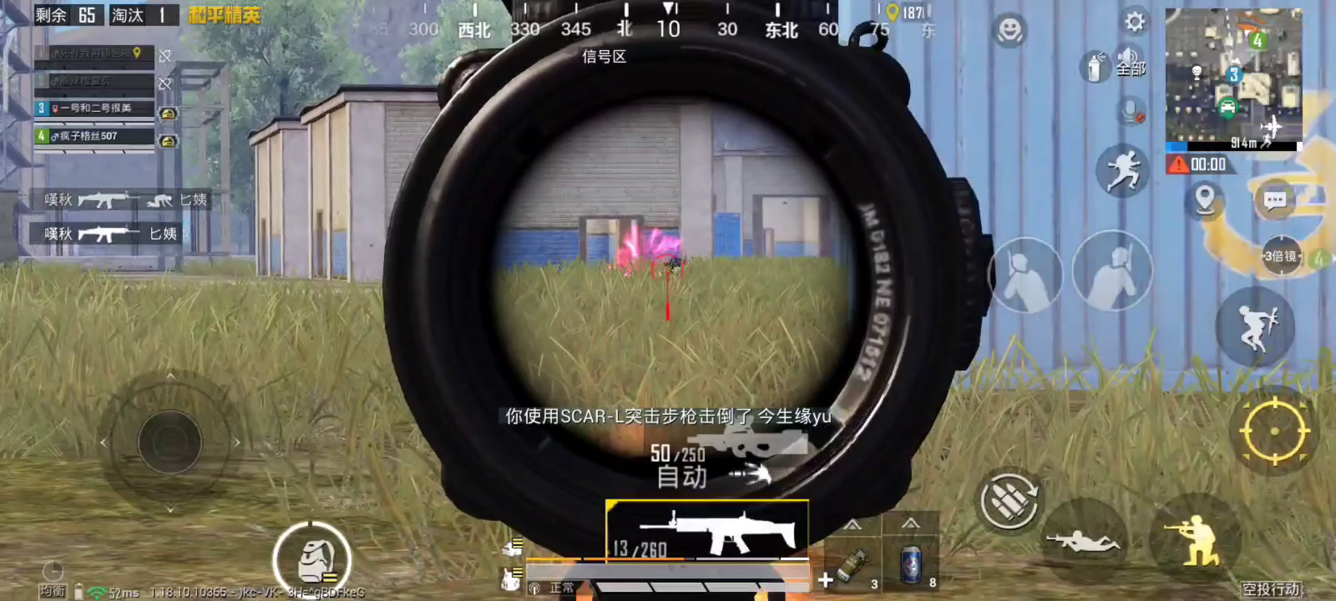 对方游戏昵称:氷渣 对方数字ID:3400954174 对方账号:微信号 对方区服:微信区 相关说明以及截图: 死的莫名其妙,人都到了小屋门口了结果直接被瞬秒了。。视频慢放显示很清楚,枪打左边窗户,我人在右边。。。网速延迟20ms绝对不卡。。。 观战整局,透视自瞄,这演员从不标点,但是会告诉队友哪个方位,然后开枪打草中看不到的的人出血雾,让队友看到人在哪,然后队友来打,演员挂壁。队友只要倒地这挂壁就直接秒人。贴脸就开范围伤害。远点就关。扫车的时候枪口始终跟着车屁股保持一个不变的距离,看过自瞄扫车的应该都知道这是因为自瞄跟不上车在前方横向移动的速度。平板观战手机录屏,没抓到扫车这波。提供的视频是淘汰回放。