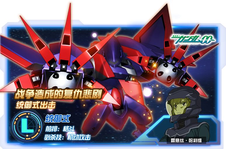 GNMA-0001V 统御式,出自《机动战士敢达00》的大型机体。驾驶它的机师是因战争而遭遇飞来横祸的悲剧少女露意丝·哈利维。它适合与哪些机体一起作战呢?这就给你们带来合适它的最新阵容推荐吧。 先划下技能重点必杀技:机动攻击(130级效果) 对敌方全体造成28730点额外伤害,使敌方全体瘫痪3秒:并使敌方全体无法回复耐久6秒。每累计获得800点能量后,统御式进入爆发模式,持续10秒,冷却12秒;爆