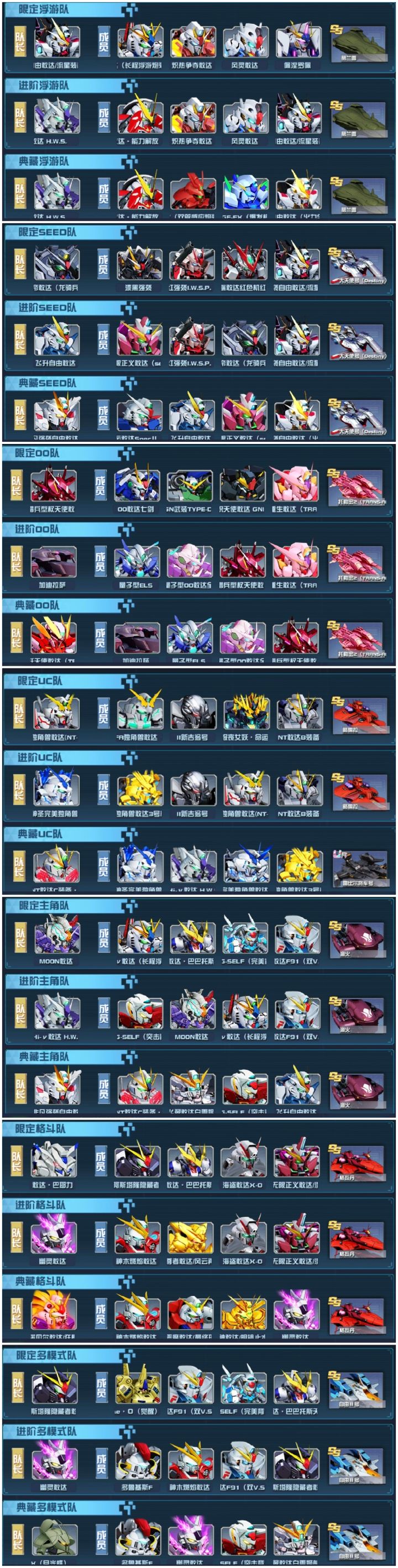 目前版本阵营排名如下T0:浮游T1:主角T2: 格斗 seedT3: OO浮游:目前版本最强体系,输出身板全部拉满,发力也比其他阵容快(3星重海牛+满配炽热争夺就可以玩),在海牛本身霸道的情况下还有着同样霸道的新船加入(比起老船身板直接上升2,3个档次),现在的浮游队基本无敌。海牛高达HWS:3.0第一台典藏,拥有变态加攻击队长技配合一瞬间打出3个无视防御的逆天(5星后可以打出4个),