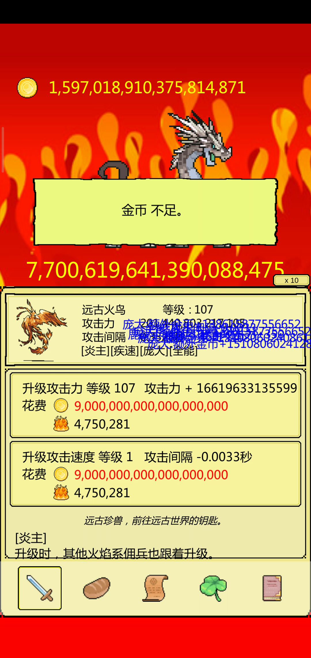 经历了陨星龙和火龙的十几分钟折磨,终于出气了,地圣龙这个大礼包很好刷。 给作者提点建议,把金币上限提高点,后面升一级就是满上限的金币,稍不注意钱就爆了,浪费好的钱。