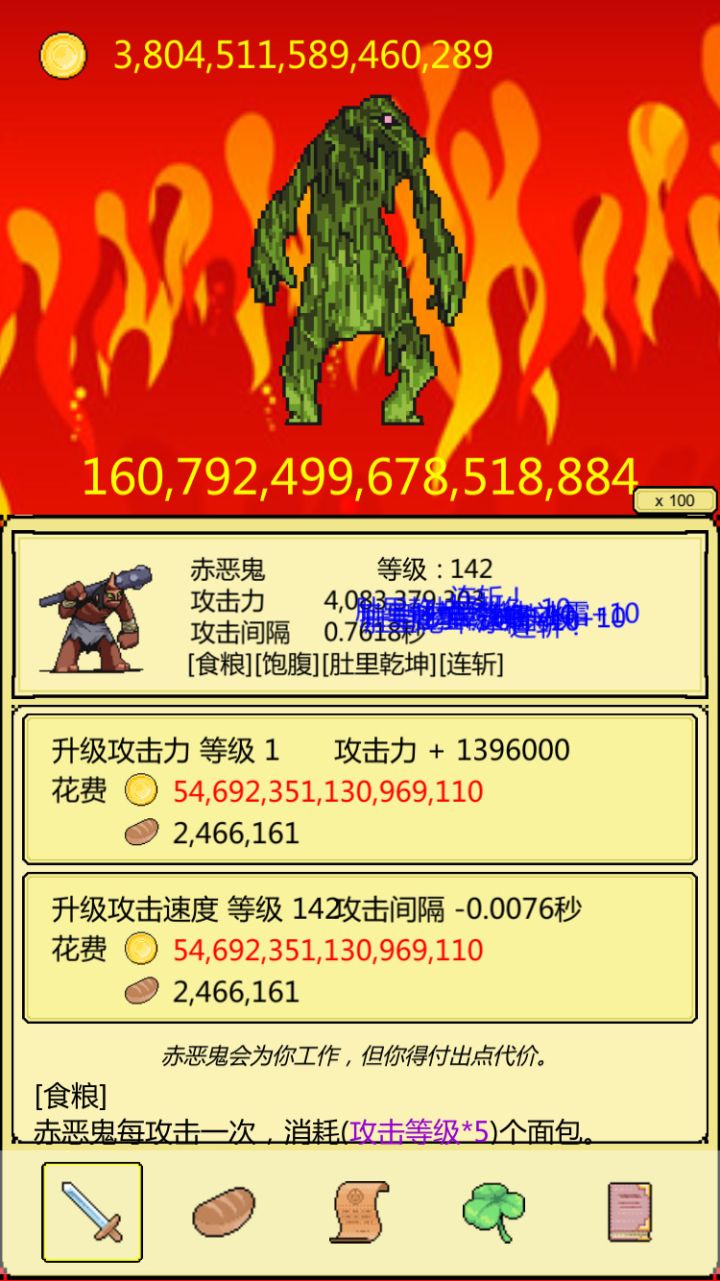 如果赤恶鬼洗个全能,假设200级可以极限,消耗面包1000,一秒50000。如果面包不够会咋样