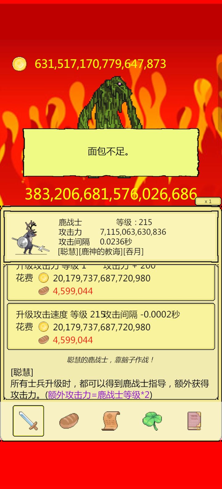极限吞月鹿速通火鸟全流程!原理:依靠极限吞月鹿打钱能力,极速度过魔像120空窗期过程:鹿洗吞月,崇拜点面包,鸡点5,火术177前靠魔女给老司机打钱,老司机养吞月鹿,火术177后吞月鹿基本养成,点攻速到0.52以下,极限,然后依靠极限频繁触发吞月,当攻速大于0.0213时,升级一次攻速,保持攻速始终维持在0.02左右,当面包用完时,吞月鹿的打钱能力远超魔女蓝龙,可在几分钟之内将魔像点至120,然