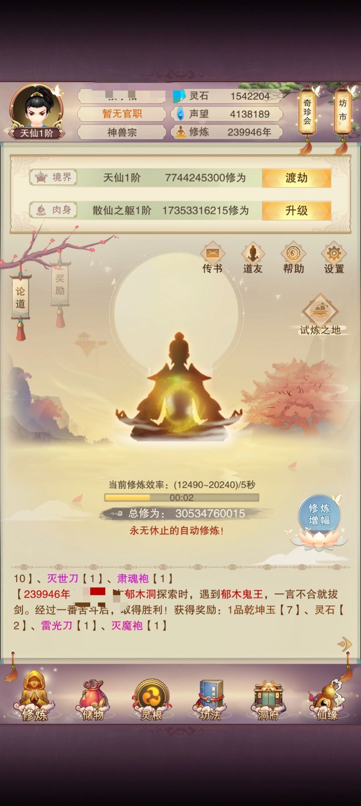 佛系玩家最佳作品,喜欢休闲,修仙,咸鱼的玩家这款必玩,当然得熬过人间阶段,没有新手引导,玩到什么程度全看个人