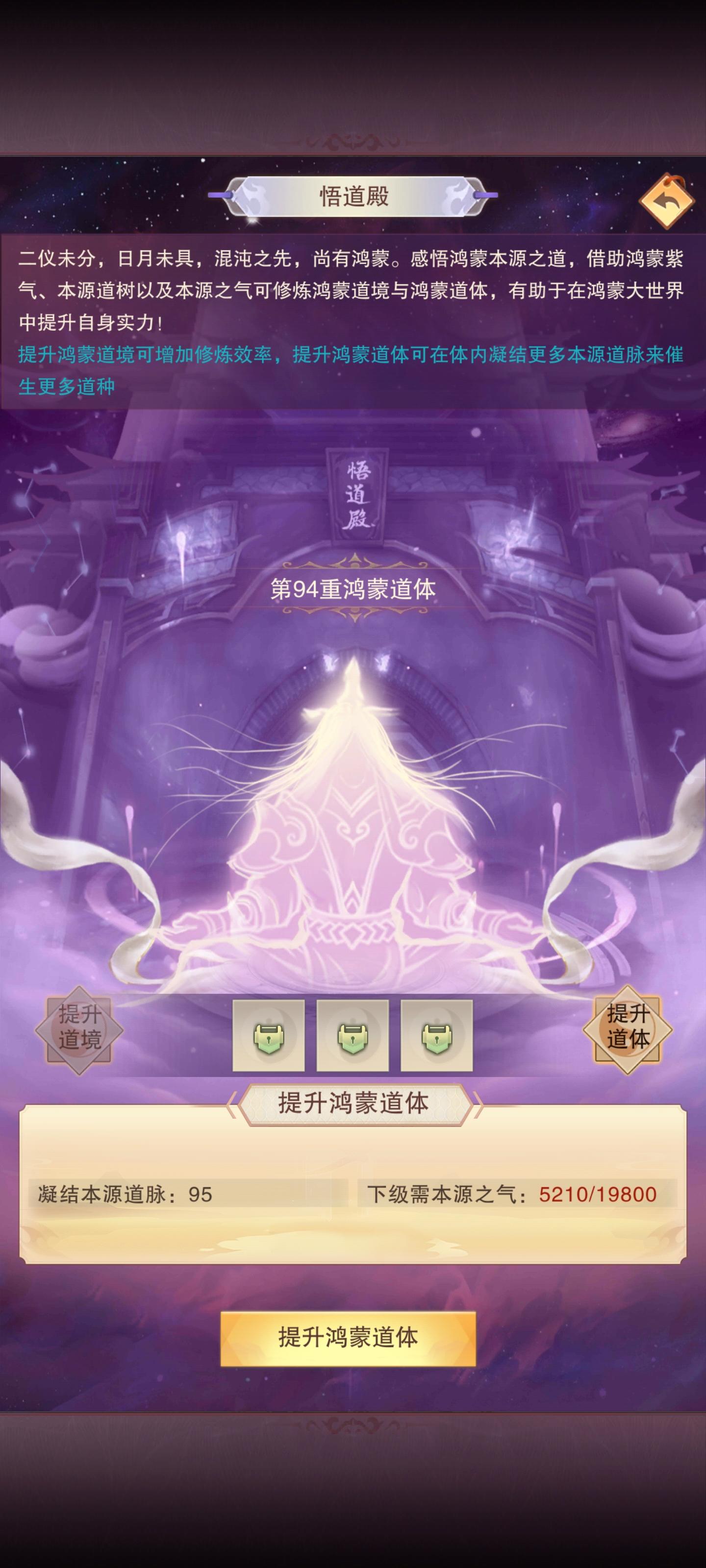前言:(1)本帖仅代表个人观点,如有不同观点,欢迎各位大佬在评论区指正,感谢诸位道友的支持 (2)此为无脑版玩法,不需要了解每个物品获取方式以及作用,更加细节的玩法道友可以自行探索,我也会尽力再写一个更加精细一点的帖子,让道友理解游戏内容而不是单纯只知道简单玩法 第一天: 1.满足准帝仙以及5⭐️道场条件之后,前往天外天玄都玉京,花费1000紫气或者上灵在元始天尊化身那里购买门票 2.按照鸿蒙-鸿