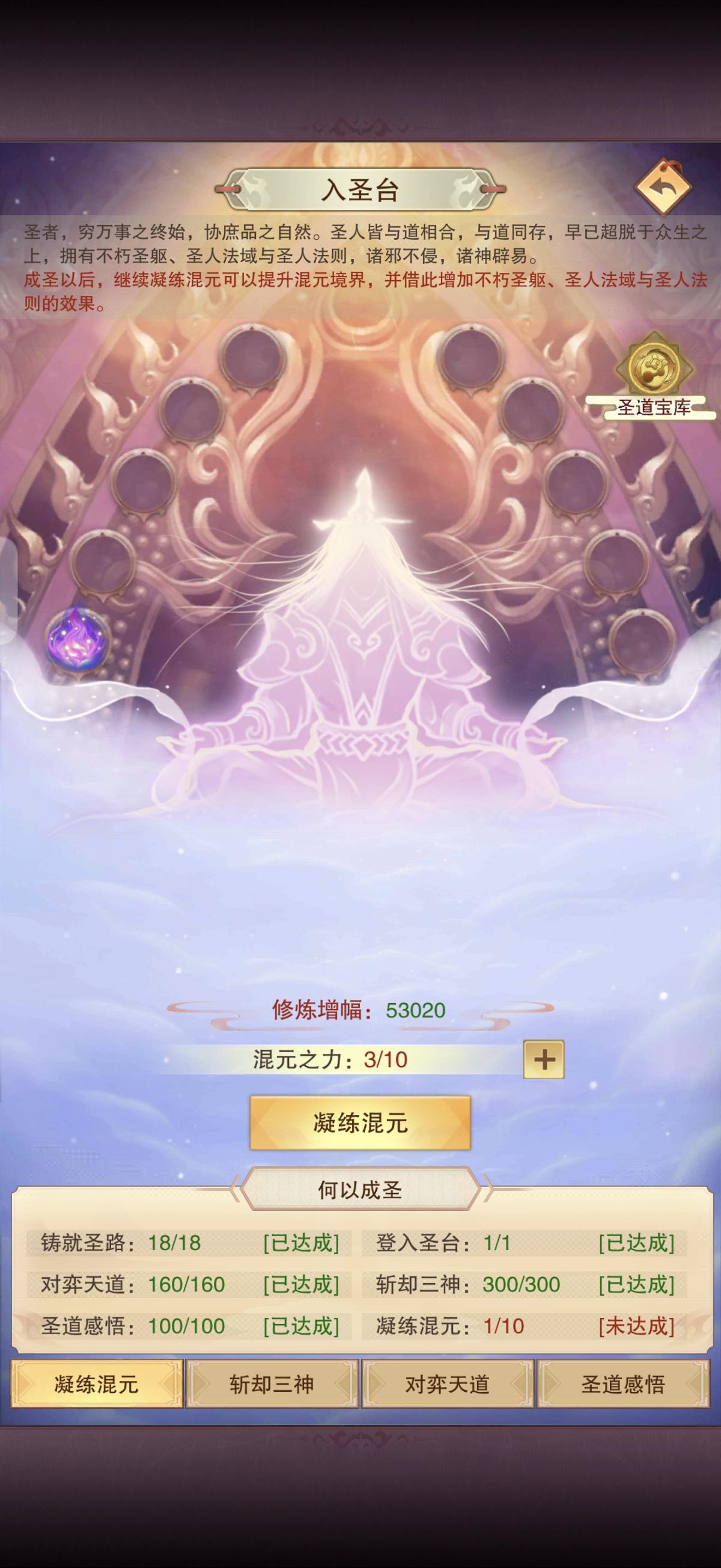 飞剑寄语 每天随机截取1个道友的飞剑,获得祝福的同时领悟一本功法。 共计15本功法,每人随机获得7本,后续版本会将这15本功法放到功德司或者愿力祠。 4攻4防4血3修,心法攻诀初始属性35,真诀初始属性350,秘诀初始属性40。 桃林真诀是加血的,有没有道友抽中? 显圣大殿 每天可以用一个先圣的显圣真言,获得100圣缘,1个圣人法则和1个圣人信物。 18个显圣真言奖励相同。 太虚幻境 四个幻境每天
