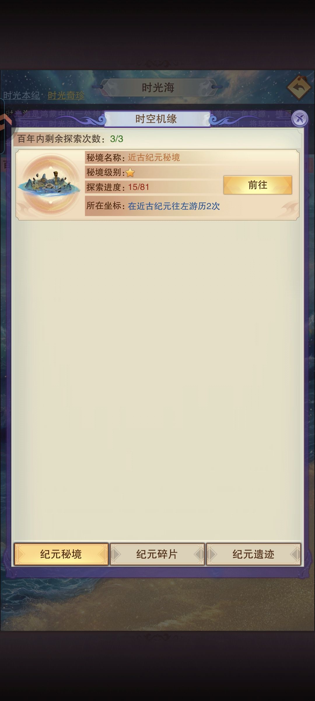 特别注意一下纪元秘境和纪元碎片所在坐标的描述区别