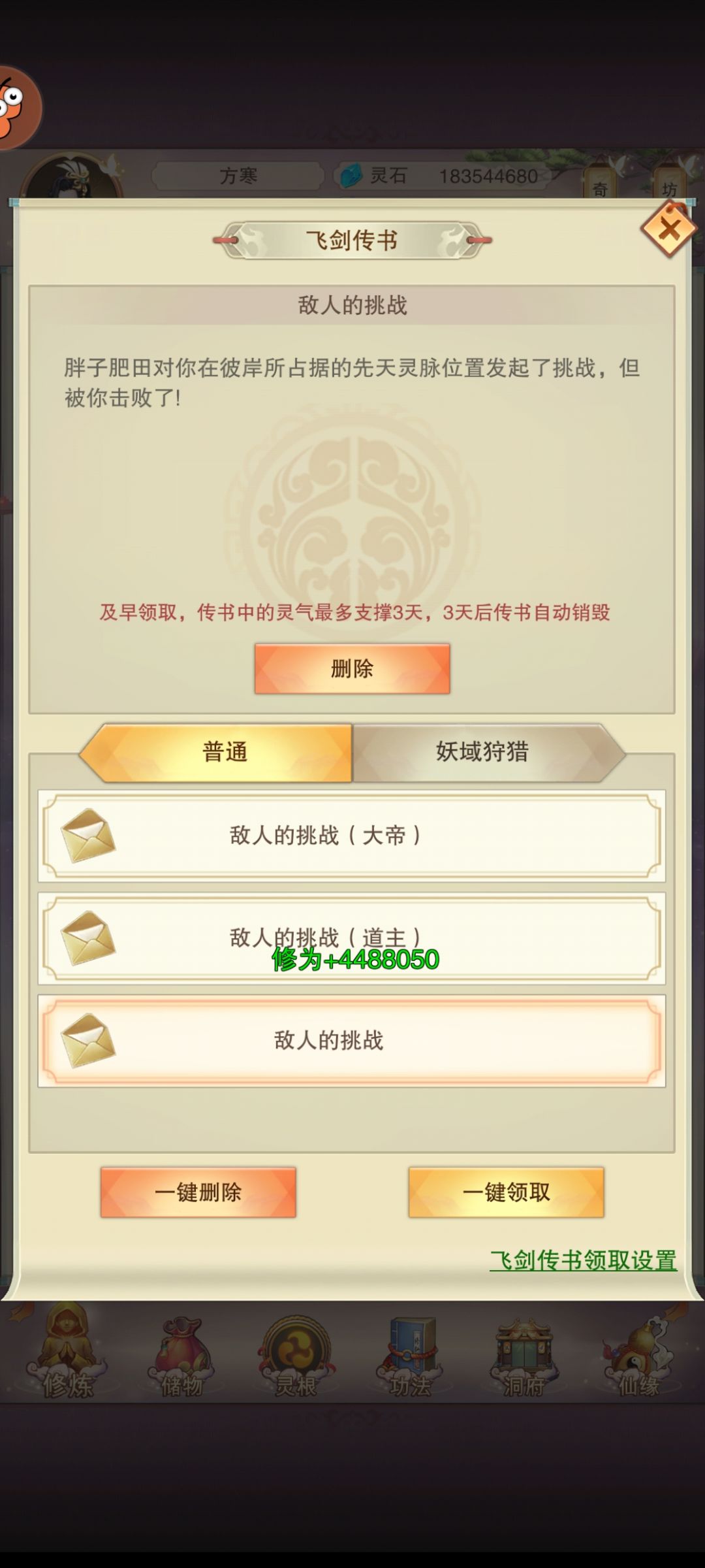 缺九品仙丹的(现在版本修为提的快,除了车头应该都要缺些吧,毕竟魔晶留着换一转二转更香),可以刷天外天的东皇 实测数据,每天四百轮出窍,花费两百万灵石,第一天出七颗,第二天出五颗,第三天出八颗 前面不知道,我已经把魔晶换完了,最后缺才查了攻略去刷的图(可伶的是魔晶已经败完了,欣慰的是还好没有试炼换丹),如果可以,应该尽量刷图拿丹,魔晶留着换一转二转~#想不想修真 #想不想修真日常