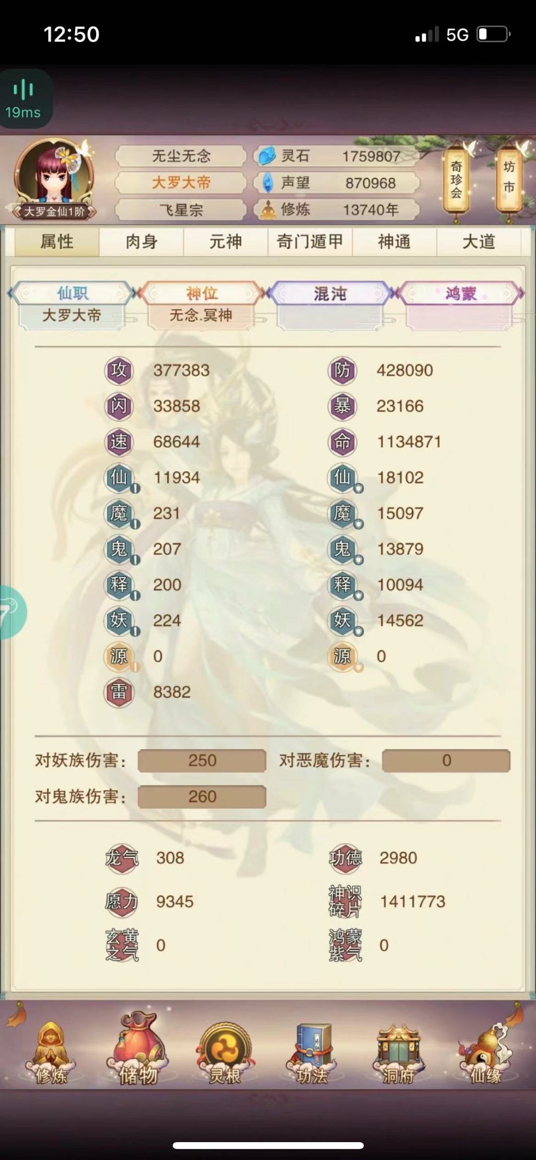 【前情提要】 小七新区,女号:2024年1月13日开区,落地2万氪,2024年6月4日1.374万年约8.5万上灵,上天后一路偷图买天秘,全天秘,无仙丹。攻防神通、修为神通; 华为老区,男号:2021年1月9日开区,落地2.6万氪,2021年6月1日1.374万年约10万上灵,大概氪了5万防御丹,1万攻击丹,1.5万天秘,攻防神通,真防神通; 13740年,对比进度如下: 【结论】 1、本文对比仅